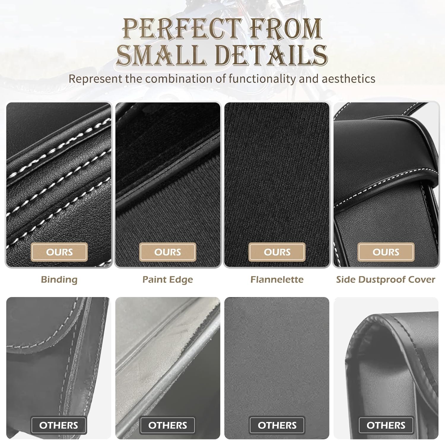 - ★【Detail Upgraded】: For a exquisite look, Our motorcycle saddlebags have upgraded binding, paint Edge, flannelette lining. Compared with the normal loose edge motorcycle saddle bags, we are delicated to improve small details with fine workmanship.