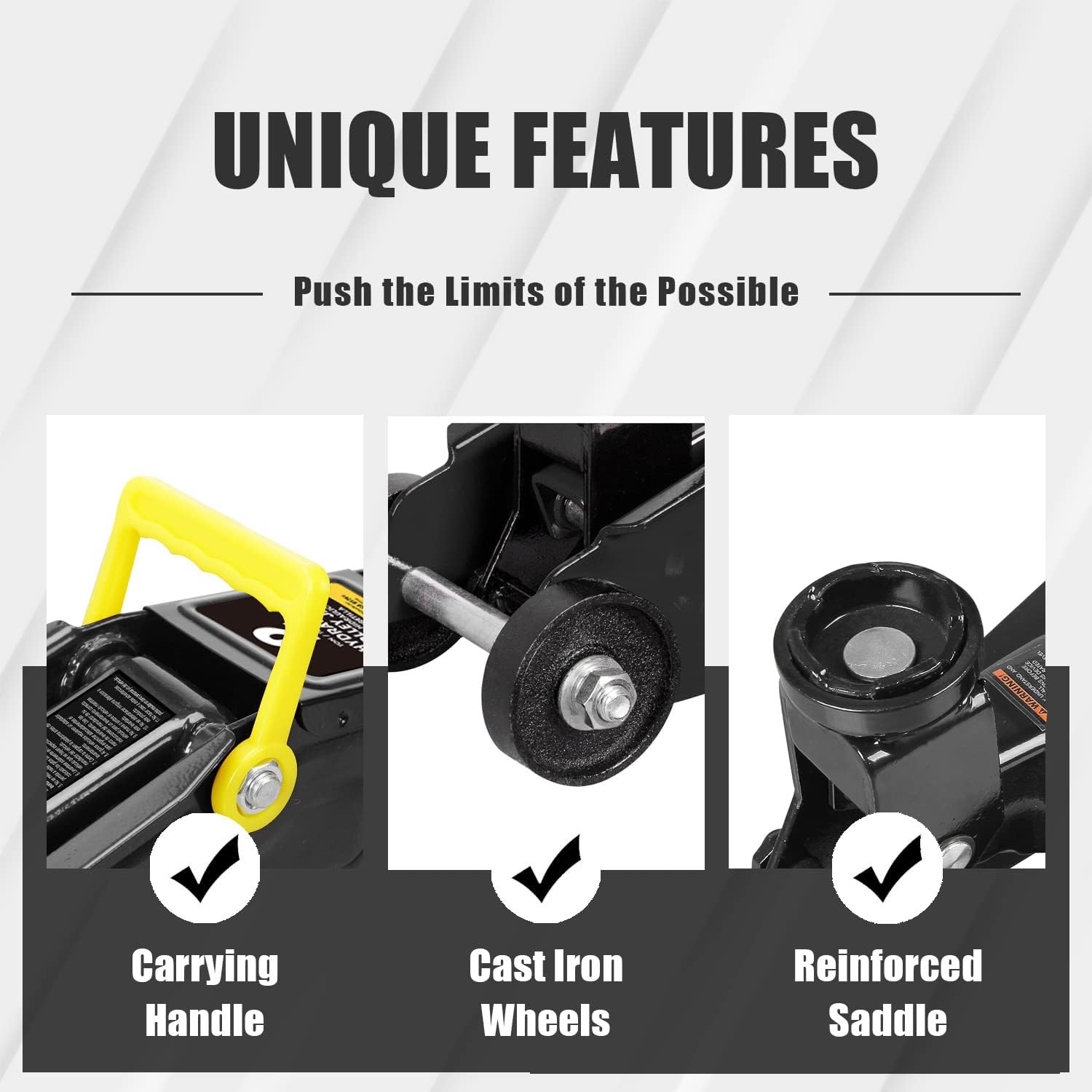 - Hydraulic trolley floor jack is constructed with heavy duty steel, providing long term durability with an industrial luster