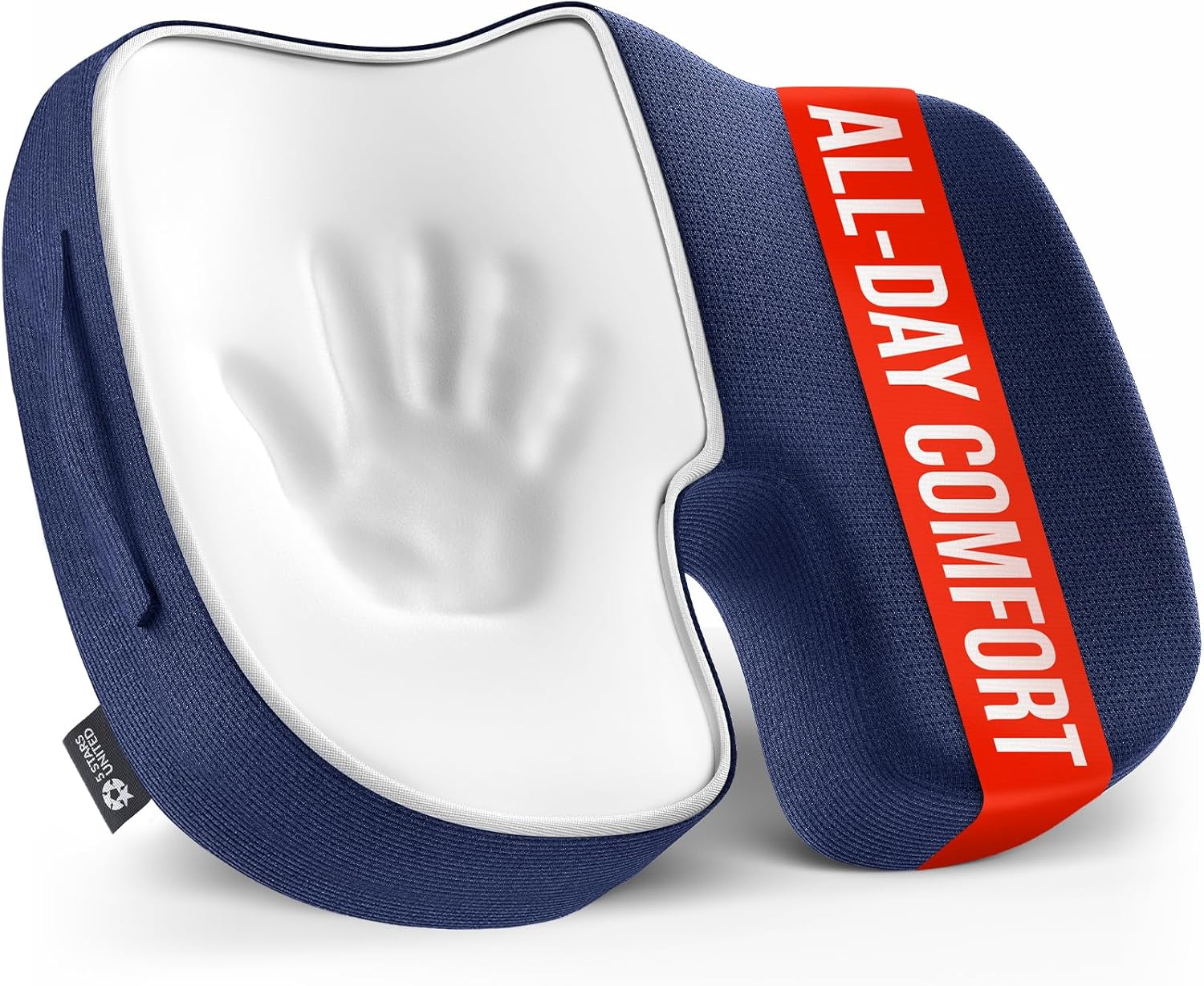 5 STARS UNITED Seat Cushion for Tailbone Pain Relief โ Memory Foam Lifting Pillow for Coccyx, Hip, Hemorrhoid, Sciatica & Post-Surgery Recovery โ Wheelchair, Car, Desk, Gaming & Office Chairs, D Blue