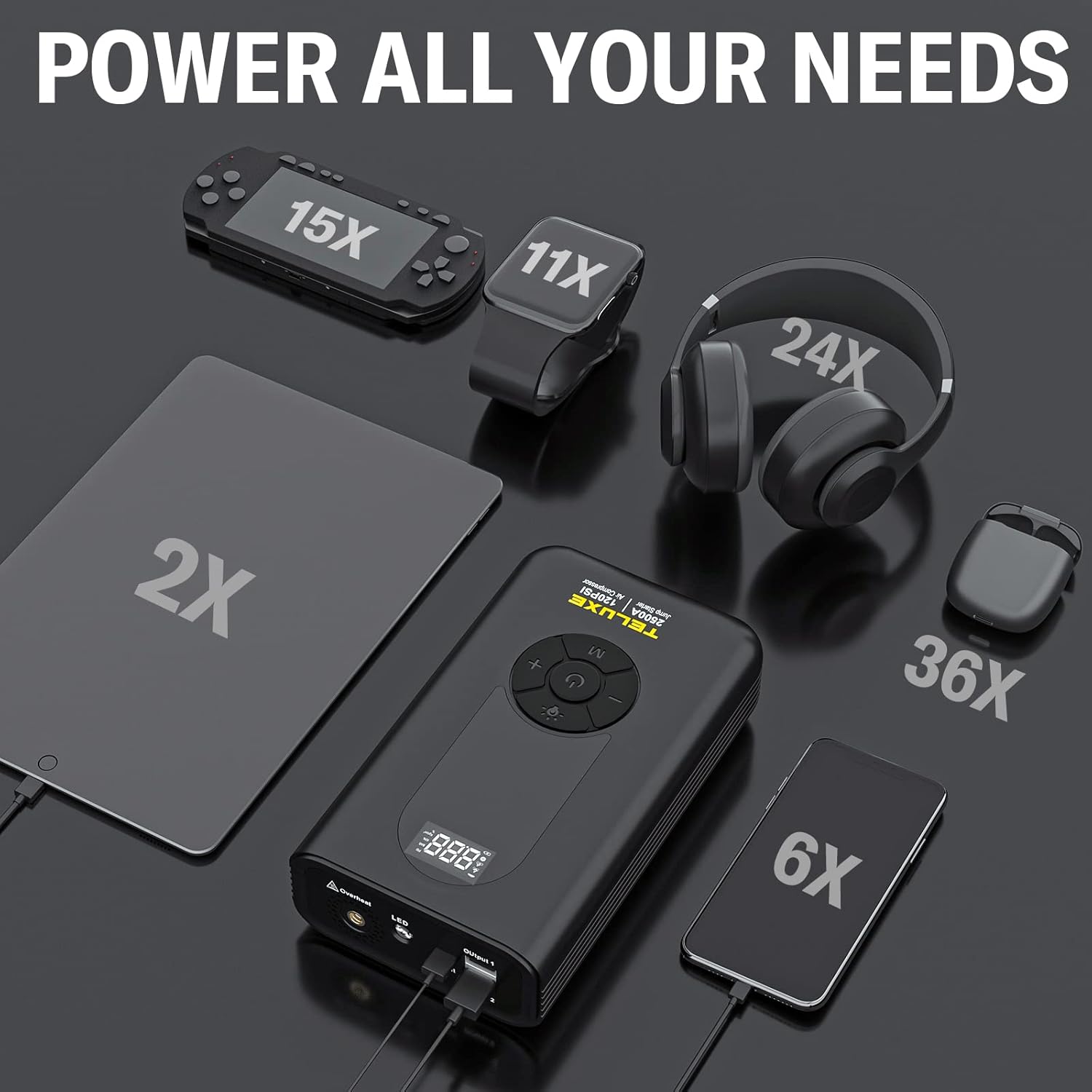 - 【MEET ALL YOUR NEEDS】The research and development of TE01 Jump Starter with Air Compressor lasted five years, and more intelligent technology and functions have been integrated into the traditional car jump starter. This car battery starter integrates six functions including car emergency start, tire inflator, lighting, mobile device charging, and QDSP smart technology.