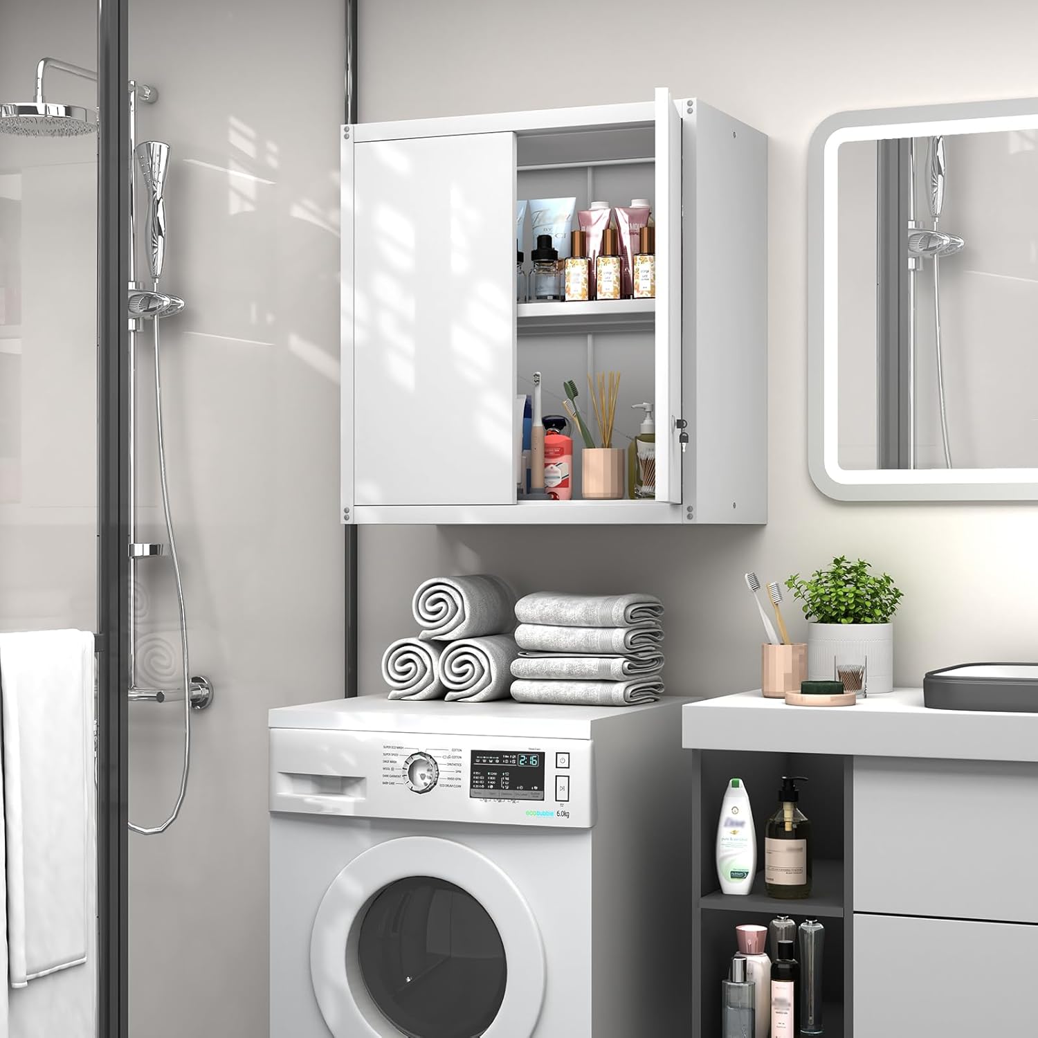 - 【Keep Your Space Organized】This hanging cabinet has 2 locking doors, ensure your items safe and private, keep your space tidy and organized, and never need to worry your items accidental fall out from the cabinet