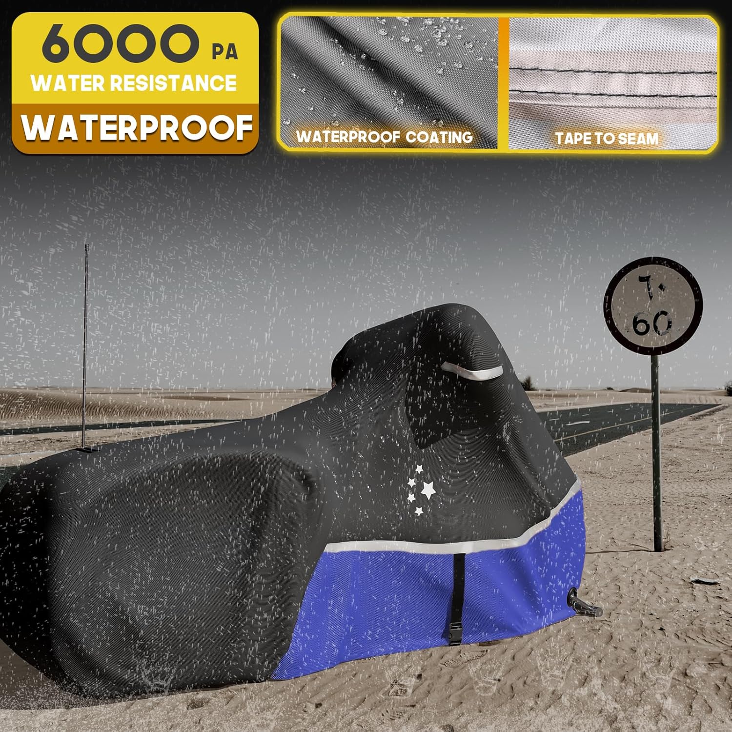- Intimate Design: ①The surrounding reflective strip is practical and beautiful ②Holes are reserved for the rear antenna ③There are vents at the front of the motorcycle,ensures dryness in the motorcycle. ④A storage bag is included.