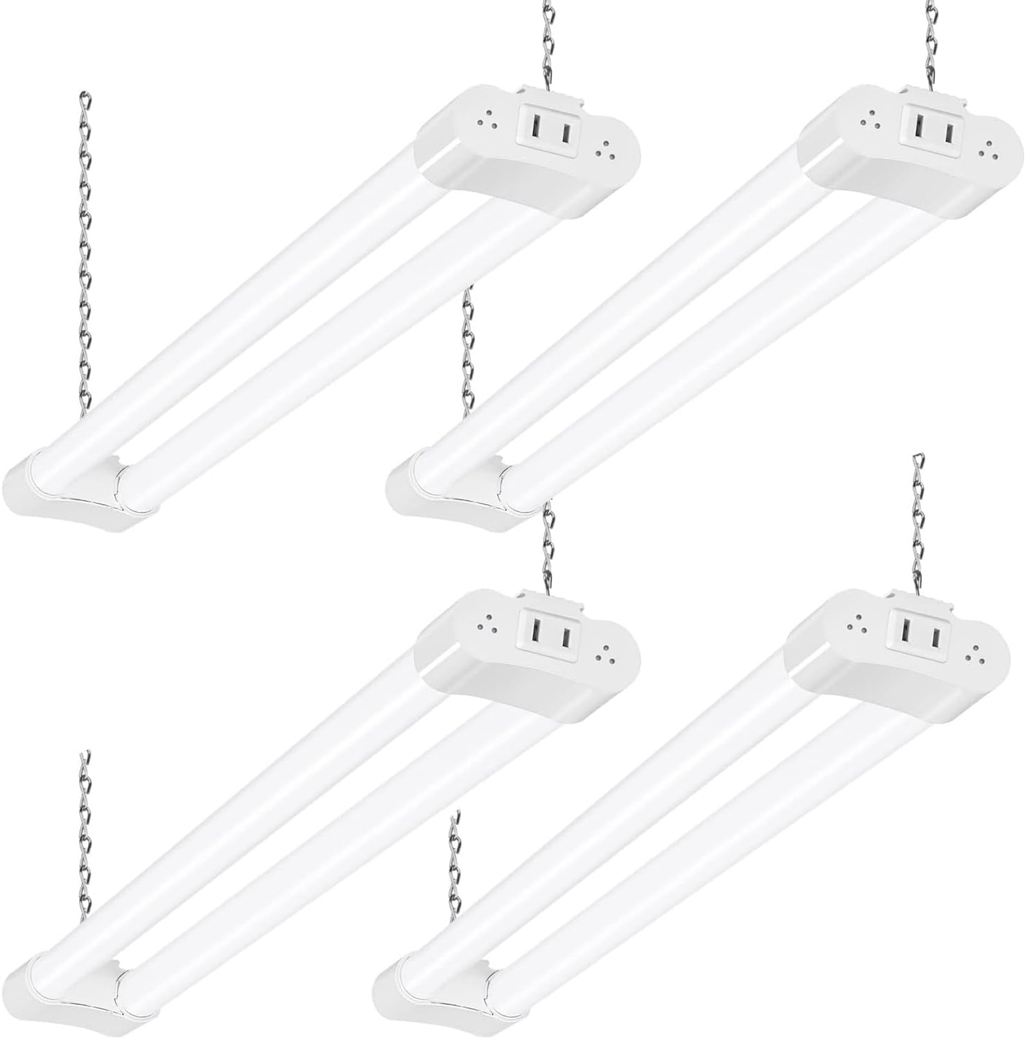 hykolity 4 Pack Linkable LED Shop Light for Garage, 2FT 22W Utility Light Fixture, 2500lm, 5000K Daylight LED Workbench Lighting with Power Cord, Hanging or Flush Mount, White - ETL