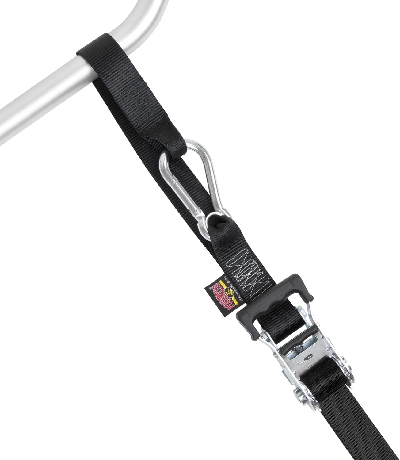 PowerTye - Made in USA - Extra Long Ratchet Tie Down Straps, Heavy Duty with Carabiner Hooks, Soft-Tye & Bag, for Motorcycle, ATV & Cargo, 1,000 lb WLL, 1.5 inch x 10ft Long, Black/Black (Pair)