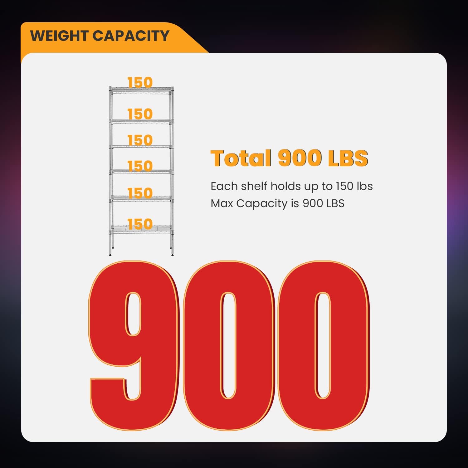 - ✔【STRONG WEIGHT CAPACITY】 Each shelving can hold 150 pounds (evenly distributed), and the total maximum load weight of the storage shelves for small places is 900 pounds. The shelves for storage for kitchen can put some commonly used living objects on it without worrying about the deformation of the storage shelves.