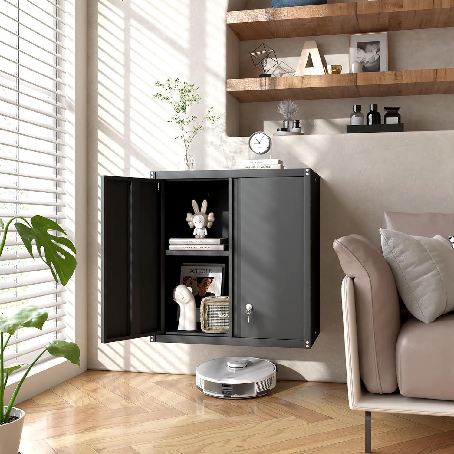 - 【Keep Your Space Organized】This hanging cabinet has 2 locking doors, ensure your items safe and private, keep your space tidy and organized, and never need to worry your items and tools accidental fall out from the cabinet