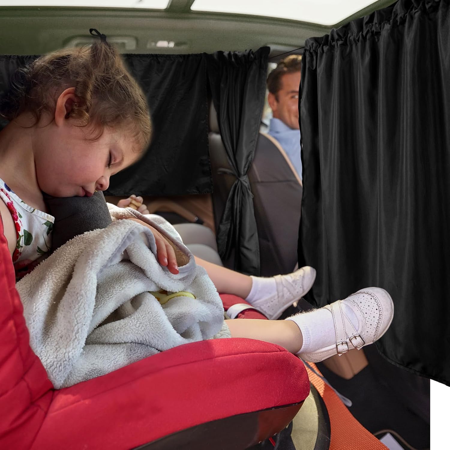 - 【Thoughtful Design】Our car camping curtains have a flexible and practical design, and the long partition curtains are articulated with a hook-and-loop fastener in the middle, when you are not using them, just push the sun shades to the side and tie them up with the string on the curtain, which is convenient and saves your precious time. And we also include a storage bag so you can neatly store this curtain set in your car.