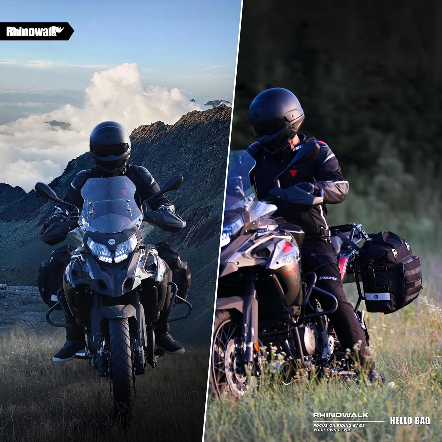 Rhinowalk Motorcycle Saddlebags Waterproof 20-25L Motorcycle Side bag Motorbike Hanging Bags Motorbike Accessories Black,1 pack