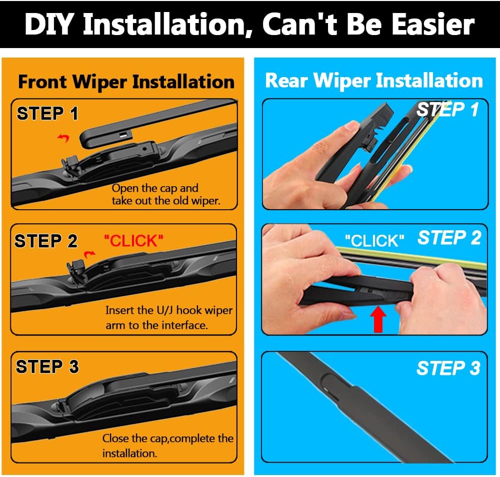 - WHAT YOU GET:Complete set of 3 wiper blade : (Left and right and Rear),★SUPER CUSTOMER SERVICE ★ AUTOBOO windshield wipers provide 24-hour online service, 6-month-returning freely.