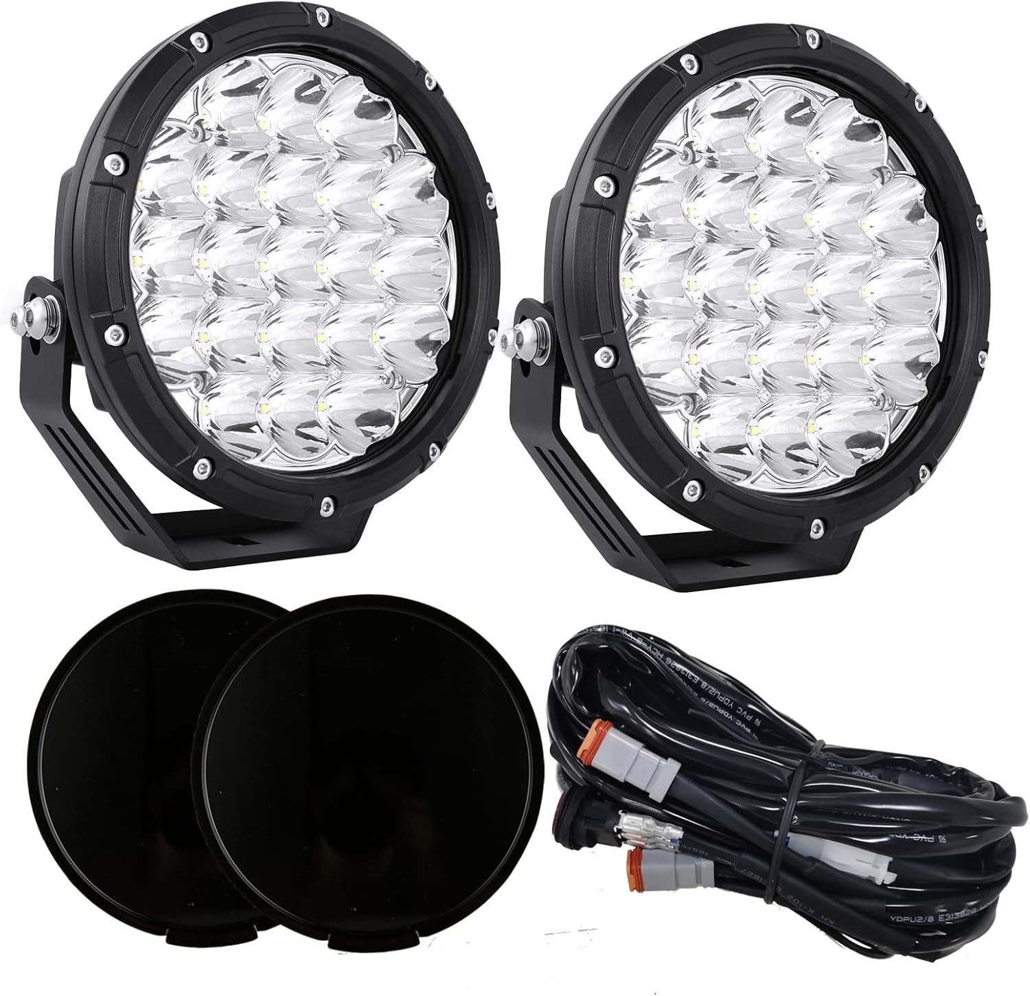 BIGLION.X Round LED Offroad Lights 7 Inch Super Bright Offroad Driving Spot Lights with Black Covers IP68 12V 24V for Trucks Pickup ATV UTV SUV