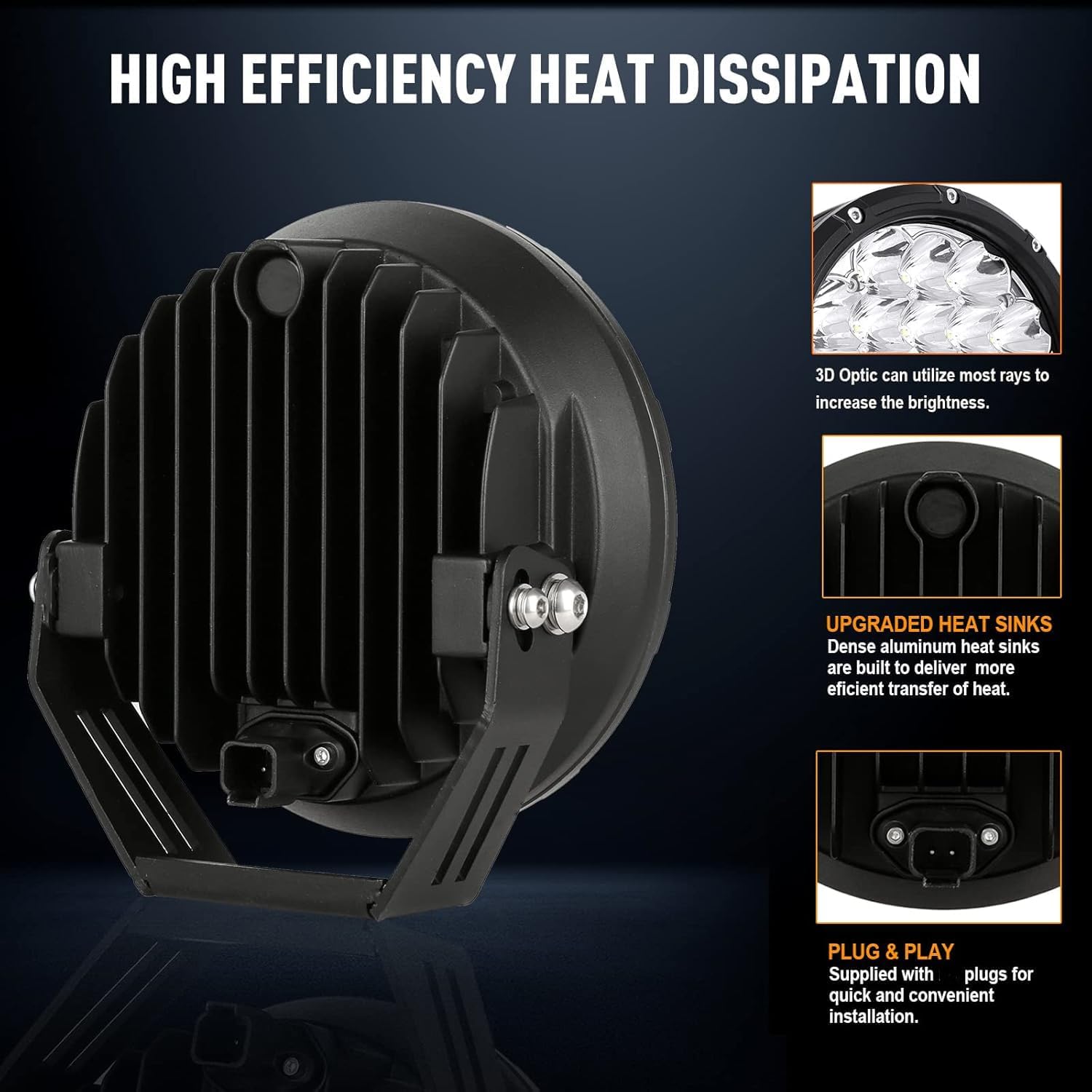 - 【HIGH STANDARD WATERPROOF GRADE】Offroad lights conform to IP68 and IP69K standard. Led spot lights applied military breather design to prevent condensation and fogging. Lengthen round led light life. Balance light bar’s differential pressure to achieve thermal balance is attained. Let the sealed lamp beads have better heat dissipation. Enhance the usage of reliability in extreme environment.