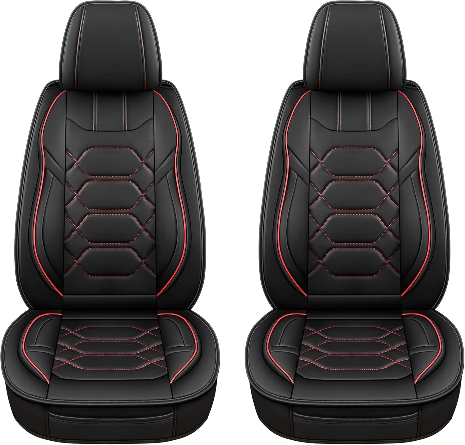 Pariitadin Leather Car Seat Covers Front Pair, Waterproof Faux Leather Seat Covers for Cars, Non-Slip Car Interior Covers Universal Fit for Most Cars Sedans Trucks SUVs, Black/Red
