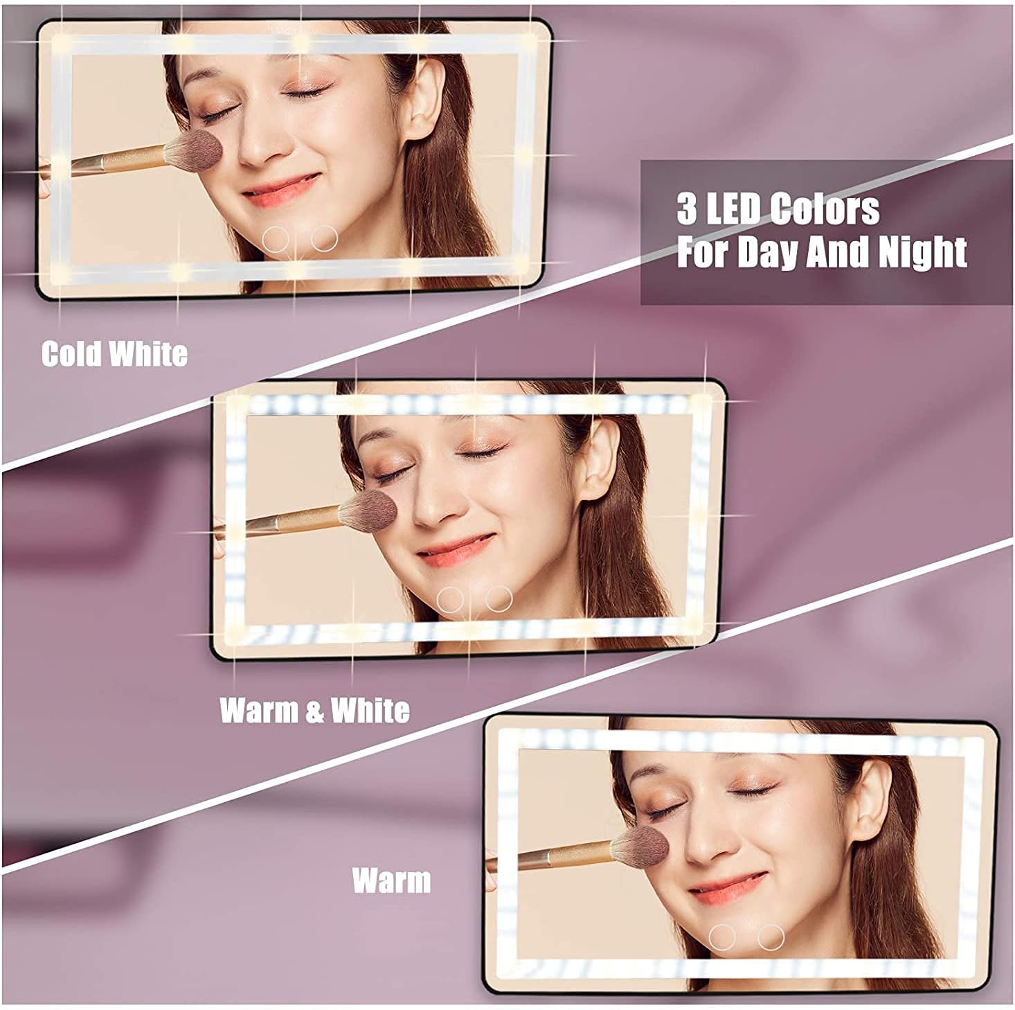 - 【LATEST UPGRADE】- This Car LED lights vanity mirror has been upgraded with a built-in lithium battery that can be charged and Car Vanity Mirror can be used without always plugging in the charging cable. The makeup mirror power cord has been extended and upgraded to 3meters. Don’t worry about the trouble caused by too short power cord.
