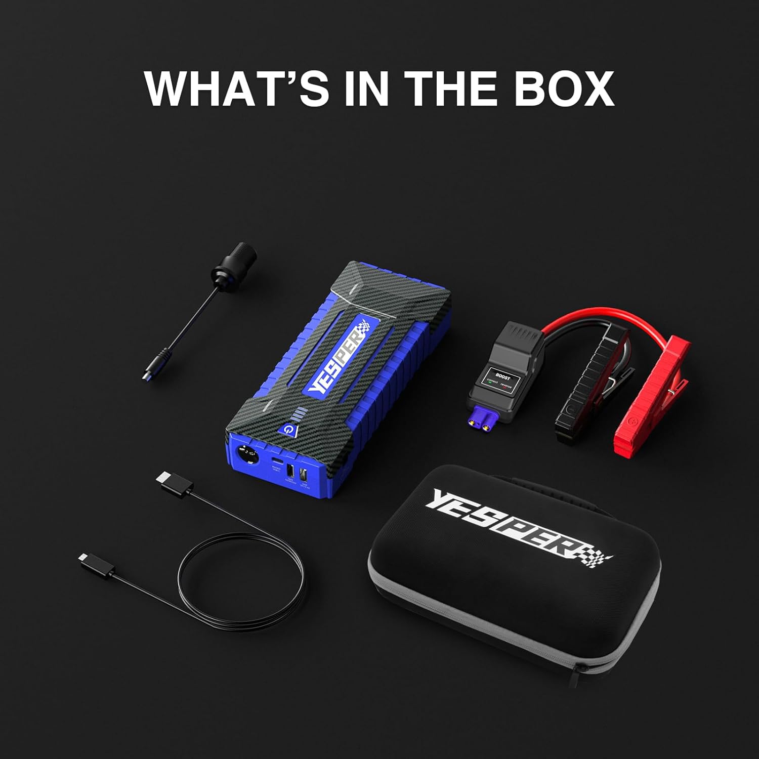 - [WHAT YOU GET]- YJS40 Car Jump Starter, Heavy-Duty Jumper Clamps, USB to Type C Cable, Cigarette Lighter Adapter, Carrying case, User Manual. If you have any questions or concerns, please get in touch with us