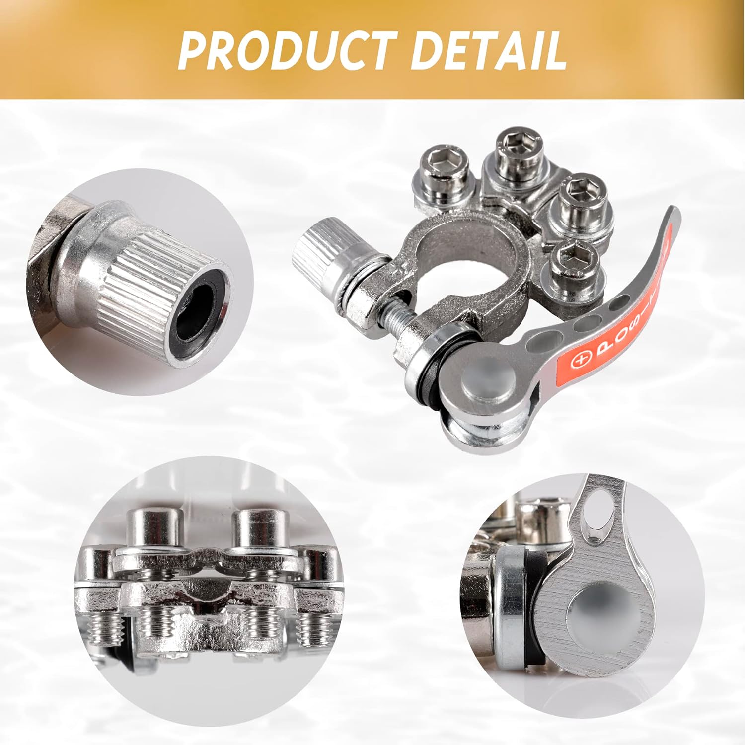 SINGARO Car Battery Terminal Connector, 4 Way Positive and Negative Pole Quick Release Terminal Clip, Applicable to SAE/JIS A Type Terminal Post, Compatible with Cars, Trucks and More(Sliver-A)
