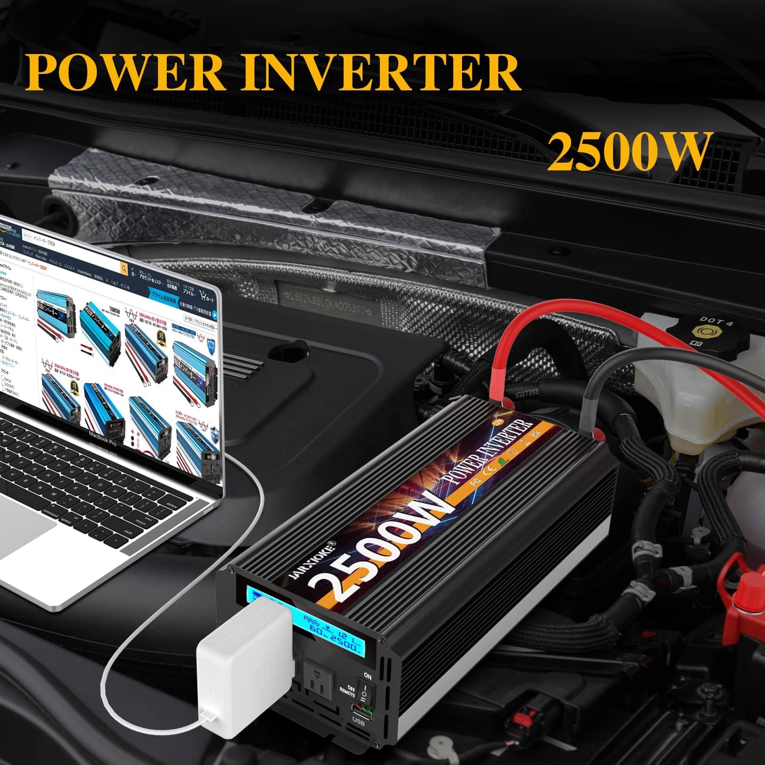 - [Package content]-1x DC 12V to AC110V/120V 2500W power inverter, 1x user manual, 1 set of 10² battery cables (1xRed, 1xBlack), 1x remote control, JARXIOKE INVERTER, you deserve it