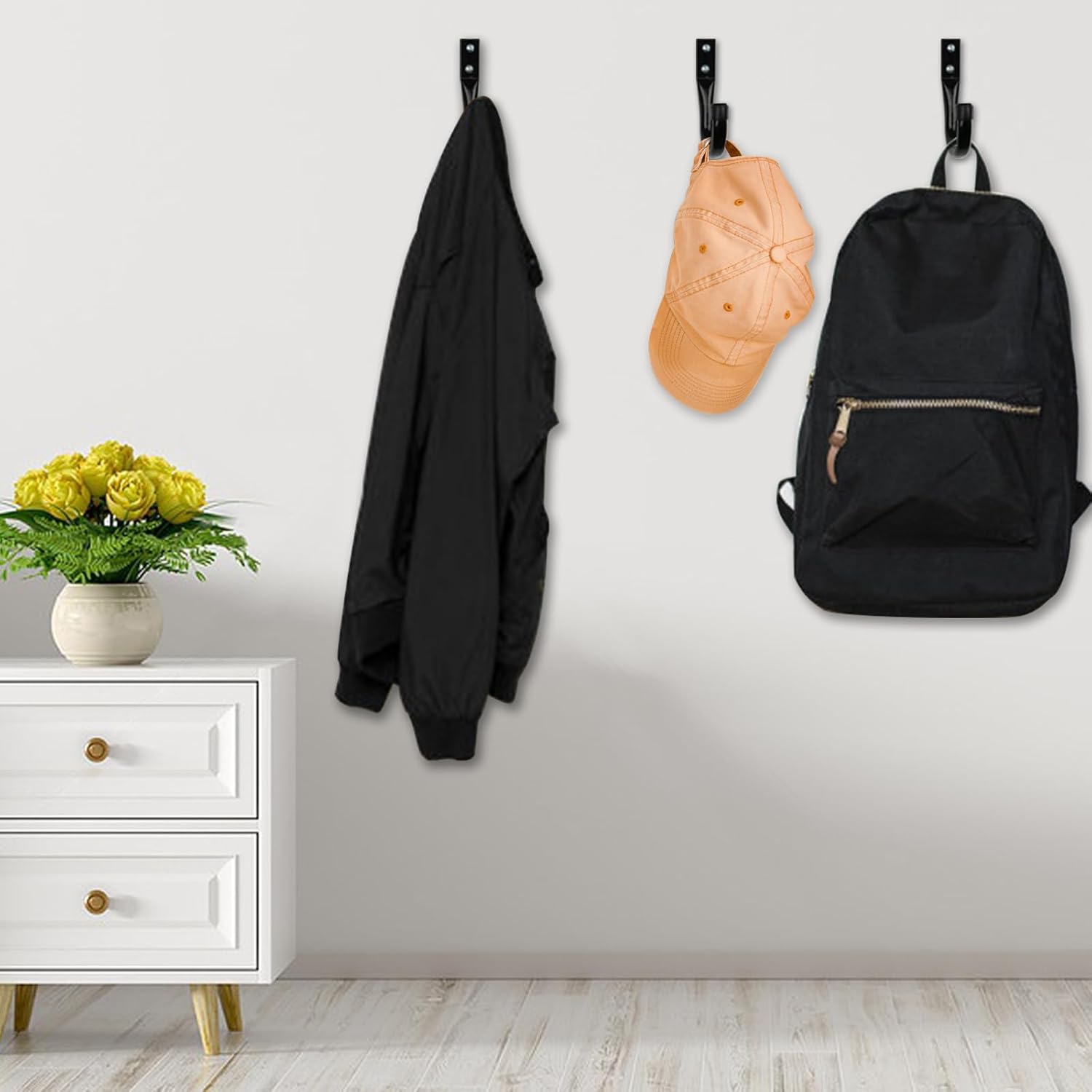 KURUI Metal Wall Hooks for Hanging Heavy Duty, 6Pcs Garage Organization and Storage Hook for Extension Cord Tool Coat Backpack Bag, Large Utility J Hooks, Black Wall Mount Hanges for Outdoor Indoor
