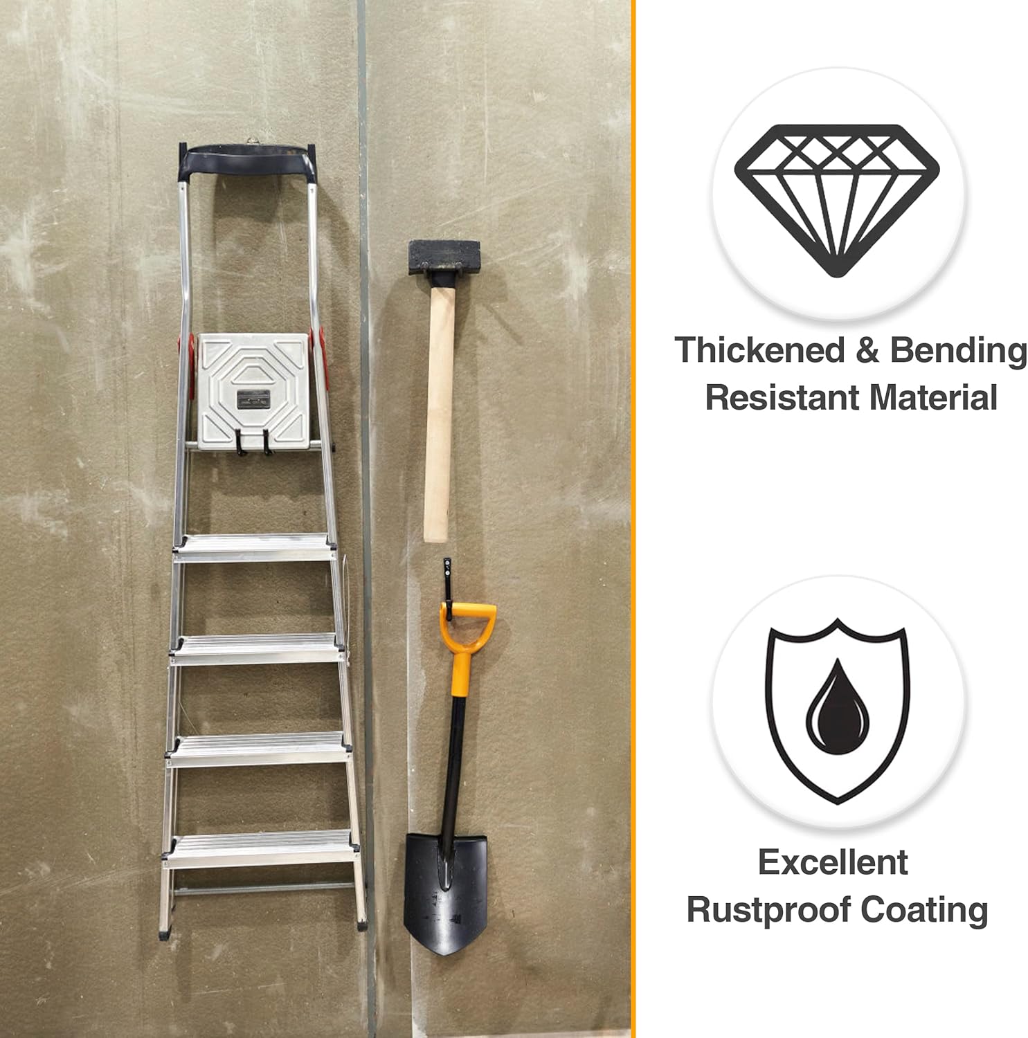 - WIDE VARIETY OF USES - Heavy-duty wall hooks are ideal for hanging a ladder, bike, chair, shovel, stroller, blower, and other objects found in garages, gardens, and homes. Not only do they help you save space in your home, but they also offer a wide variety of uses.