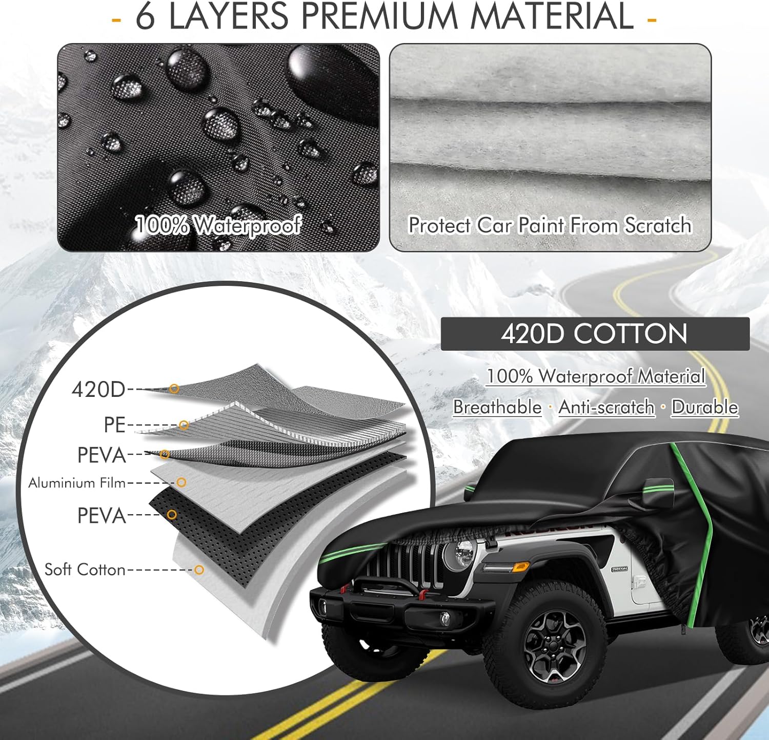 for 1987-2006 Jeep Wrangler 2 Doors 420D Cover Outdoor Waterproof UV Protection, for JK, JL, CJ, YJ, TJ, Full SUV Car Cover with Cotton Layer, 2 Zipper Door, Reflective Strip, Storage Bag
