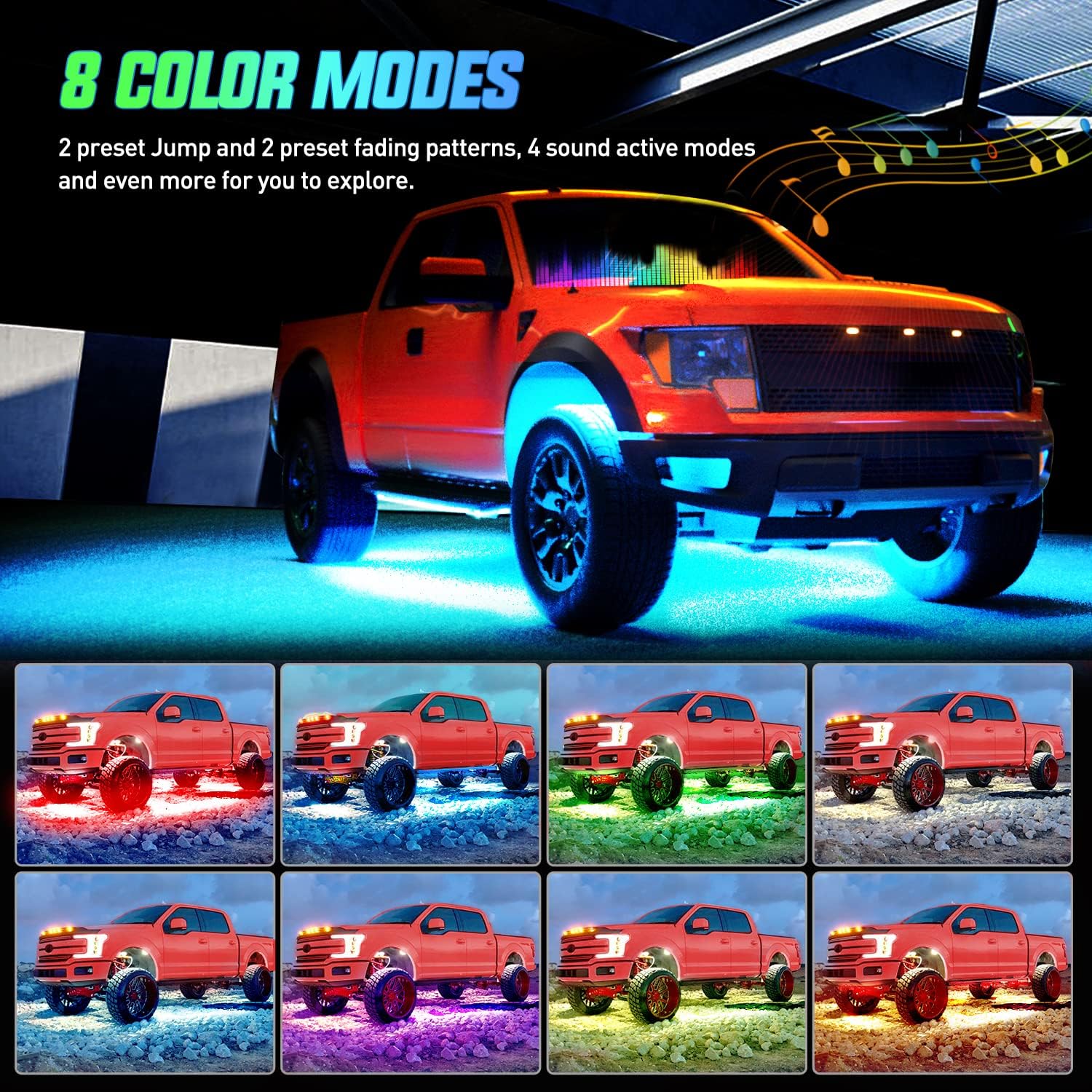 Nilight 4Pcs Car Underglow Neon Accent Strip Lights 256 LEDs RGB Multi Color DIY Sound Active Function Music Mode with APP Control and Remote Underbody Light Strips