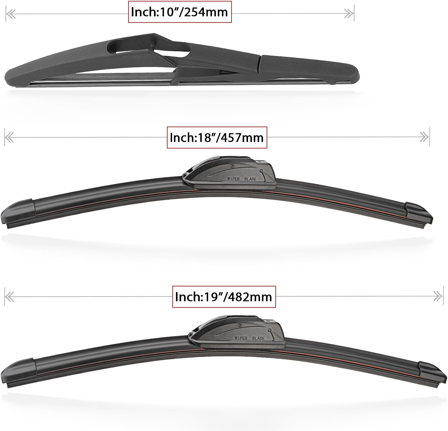 Windshield Wiper Blade Set Replacement for 2006-2011 Mini Cooper and Rear Windshield Wiper Blade-19"/18"/10" (Set of 3) U/J HOOK