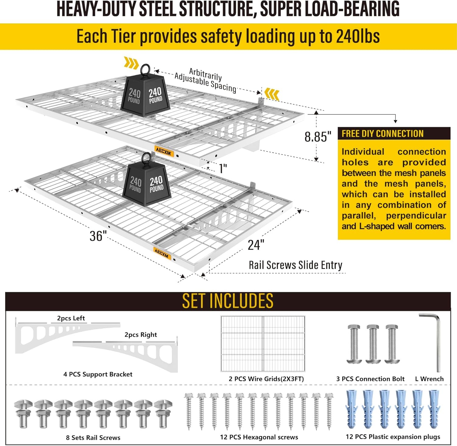 - 560lbs Load Tested: Our garage wall shelves undergo rigorous testing, with each individual unit supporting 280 lbs. The 2-pack (2x3ft) offers a total weight capacity of 560 lbs