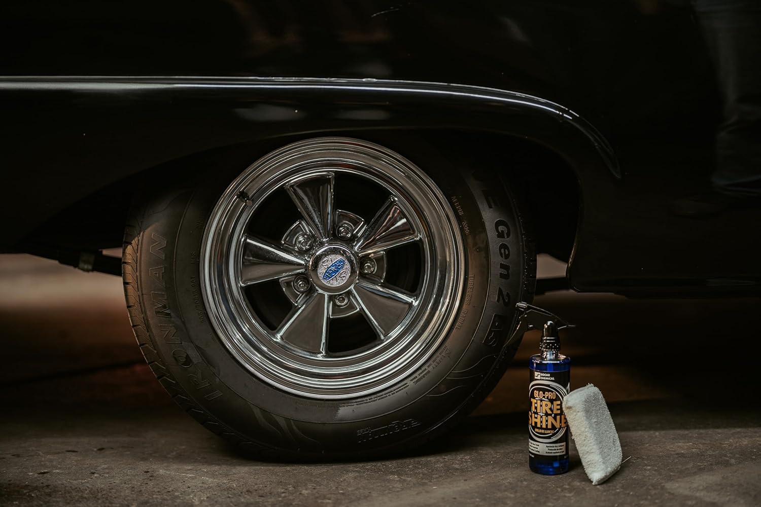 - LONG LASTING FORMULA– Glo-Pro Tire Shine will keep your tires looking glossy and new for weeks in all weather conditions, unlike most competitive products that keep their shine for only a few days