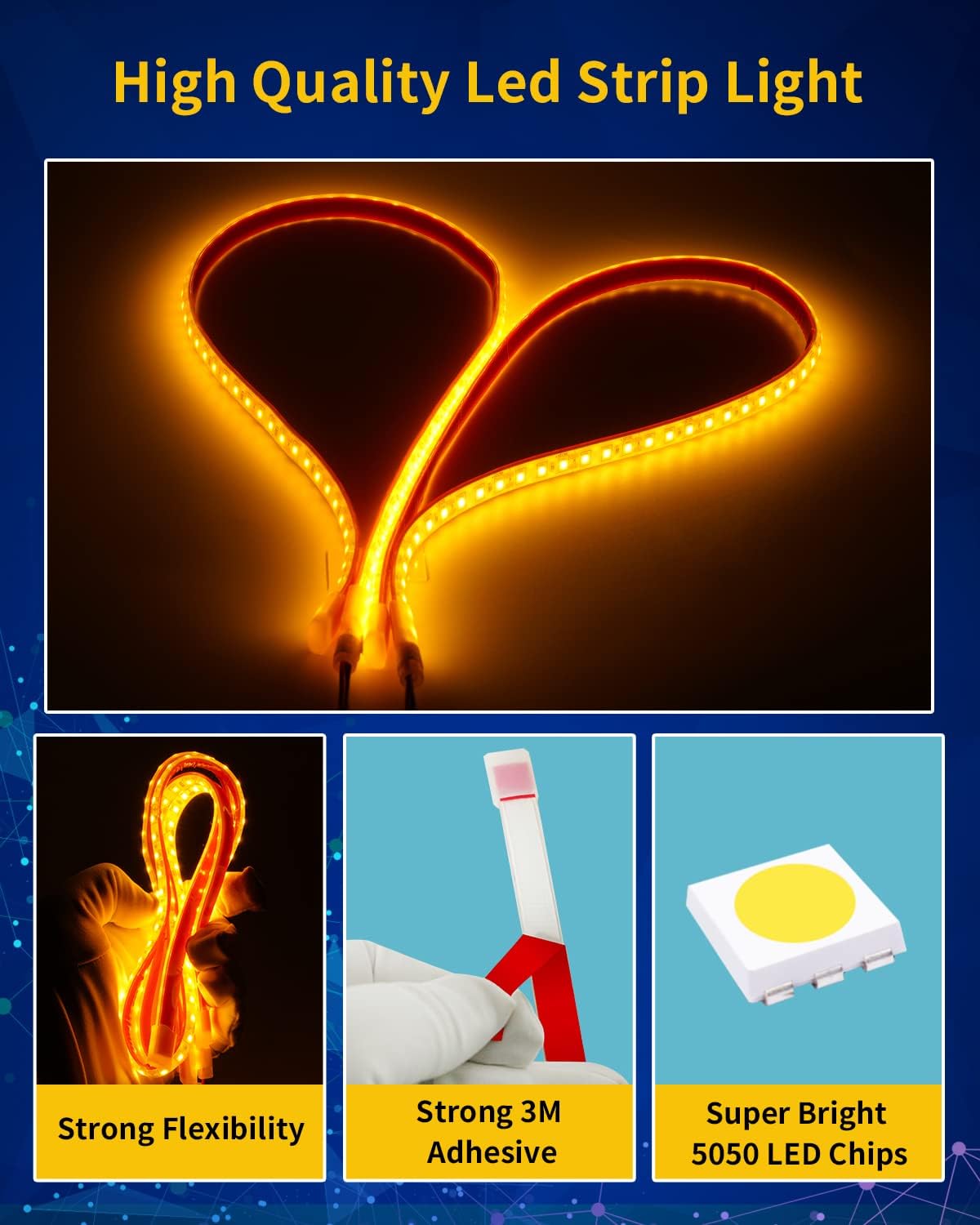 - 【Super Bright】Our 12V auto led light strip is made of high quality ABS Material and 5050 led chips,high luminous efficacy, Long lifespan >50,000 hours,UL approved, it won't get too hot even it works long time.