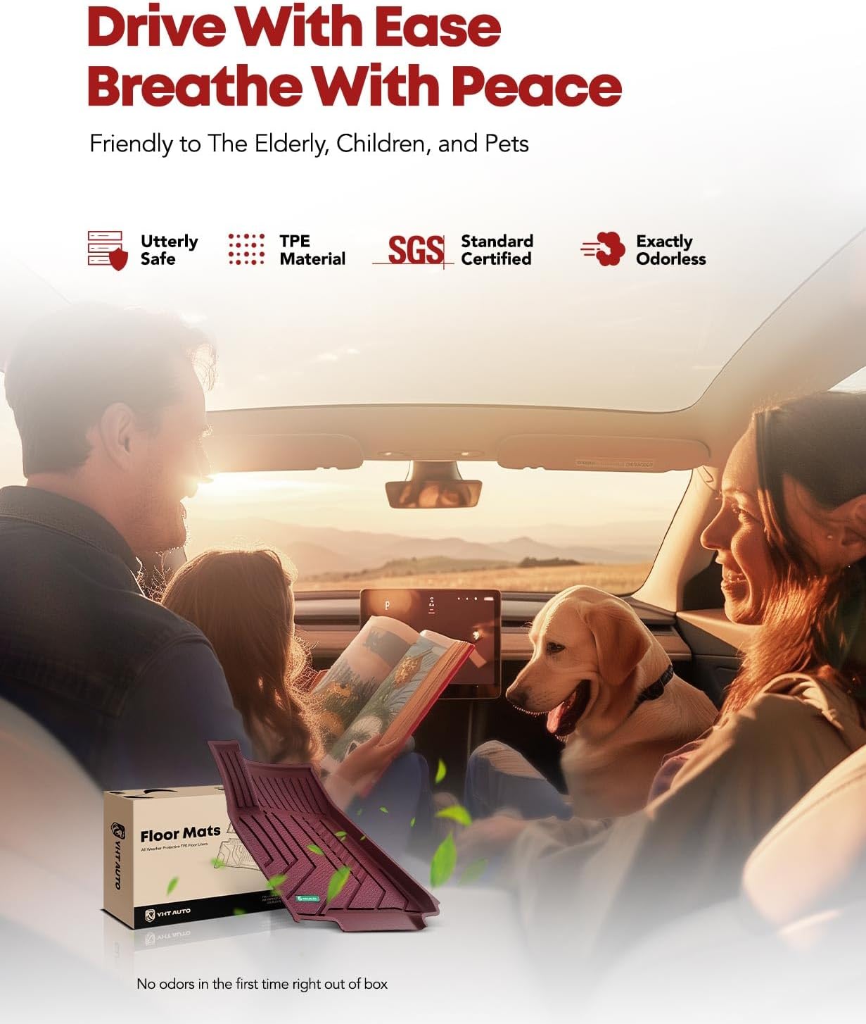 - Odorless & Healthy TPE Mats: Fear of floor mats with irritating odor hurt the elderly and children? The use of TPE material and injection molding process made of floor mats to help you solve the problem; The sturdy mats surface can effectively avoid the breeding of bacteria and viruses, allowing you and your family to spend a good driving journey