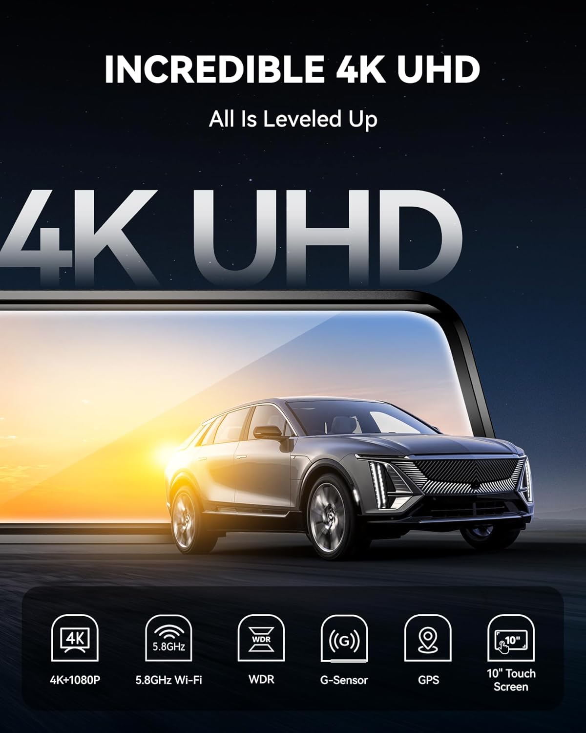 - Special Feature : 4k Resolution, 10" Touch Screen, Loop Recording, G-Sensor, Reverse Assist, 64GB Memory Card, HDR, Vertical Flip & Mirror Flip, Parking Monitor, Type-C Port, Super Capacitor, High Temperature Resistance, Super Night Vision, Built-In GPS 4k Resolution, 10" Touch Screen, Loop Recording, G-Sensor, Reverse Assist, 64GB Memory Card, HDR, Vertical Flip & Mirror Flip, Parking Monitor, Type-C Port, Super Capacitor, High Temp… See more