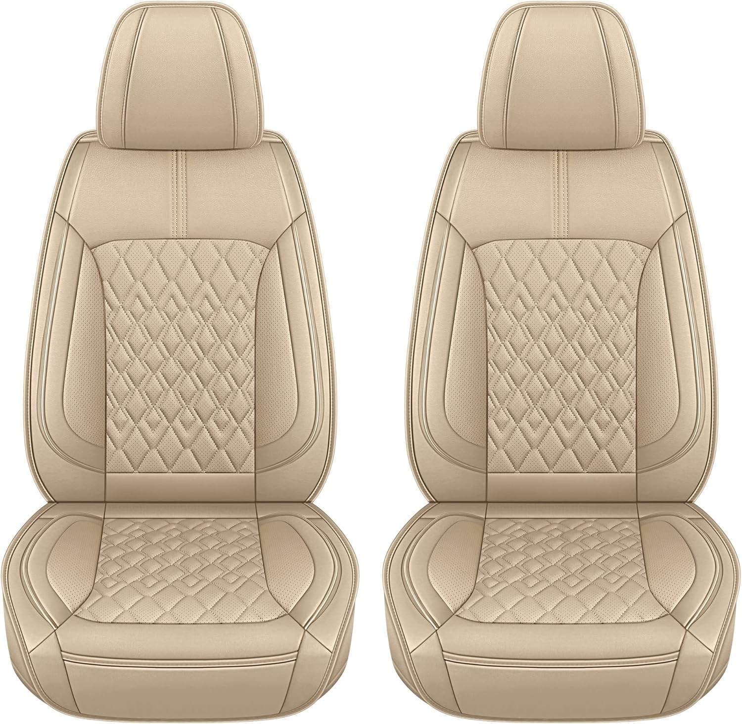 Pariitadin Leather Car Seat Covers Front Pair, Waterproof Breathable Faux Leather Automotive Seat Covers for Cars, Non-Slip Car Interior Covers Universal Fit Most Cars Sedans Trucks SUVs, Beige