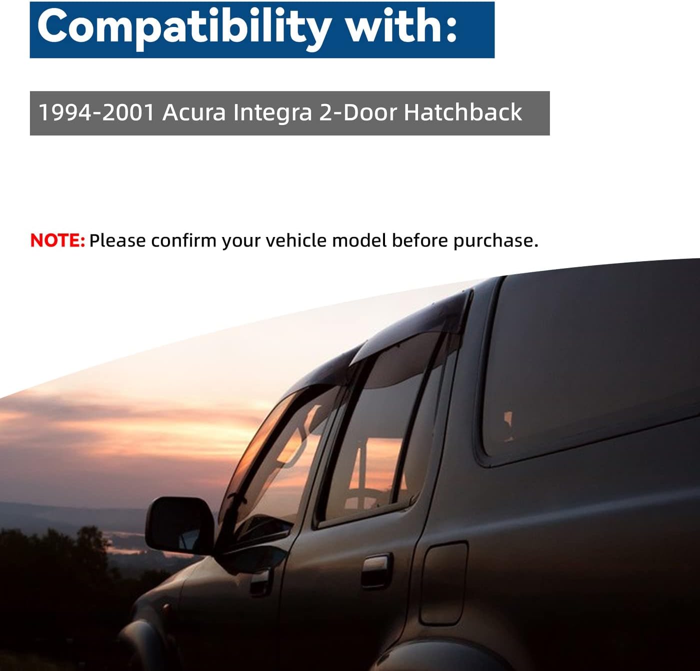 2pcs Front Smoke Tint Sun/Rain Guard Outside Mount Tape-On Vent Window Visors Compatible with 94-01 Integra 2-Door Coupe/Hatchback DC2