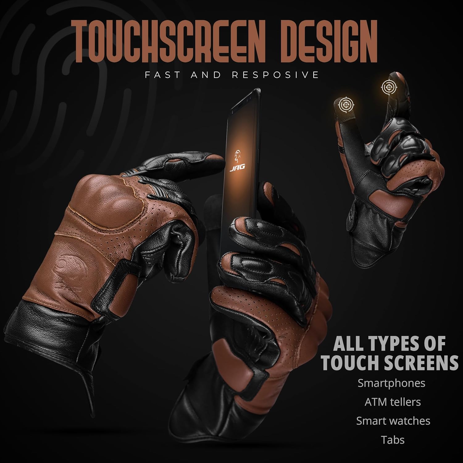 J.A.G. Motorcycle Gloves - Premium Leather Perforated Motorcycle Gloves for Men with Knuckle Protection | Touchscreen Motorbike Riding Gloves