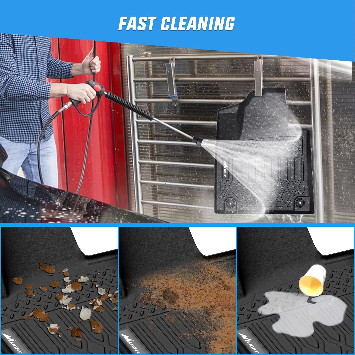 - FAST CLEANING - You can wash off messes that end up on your floor mats in seconds with soap and water. In some cases, a simple spray of the hose will do the trick.