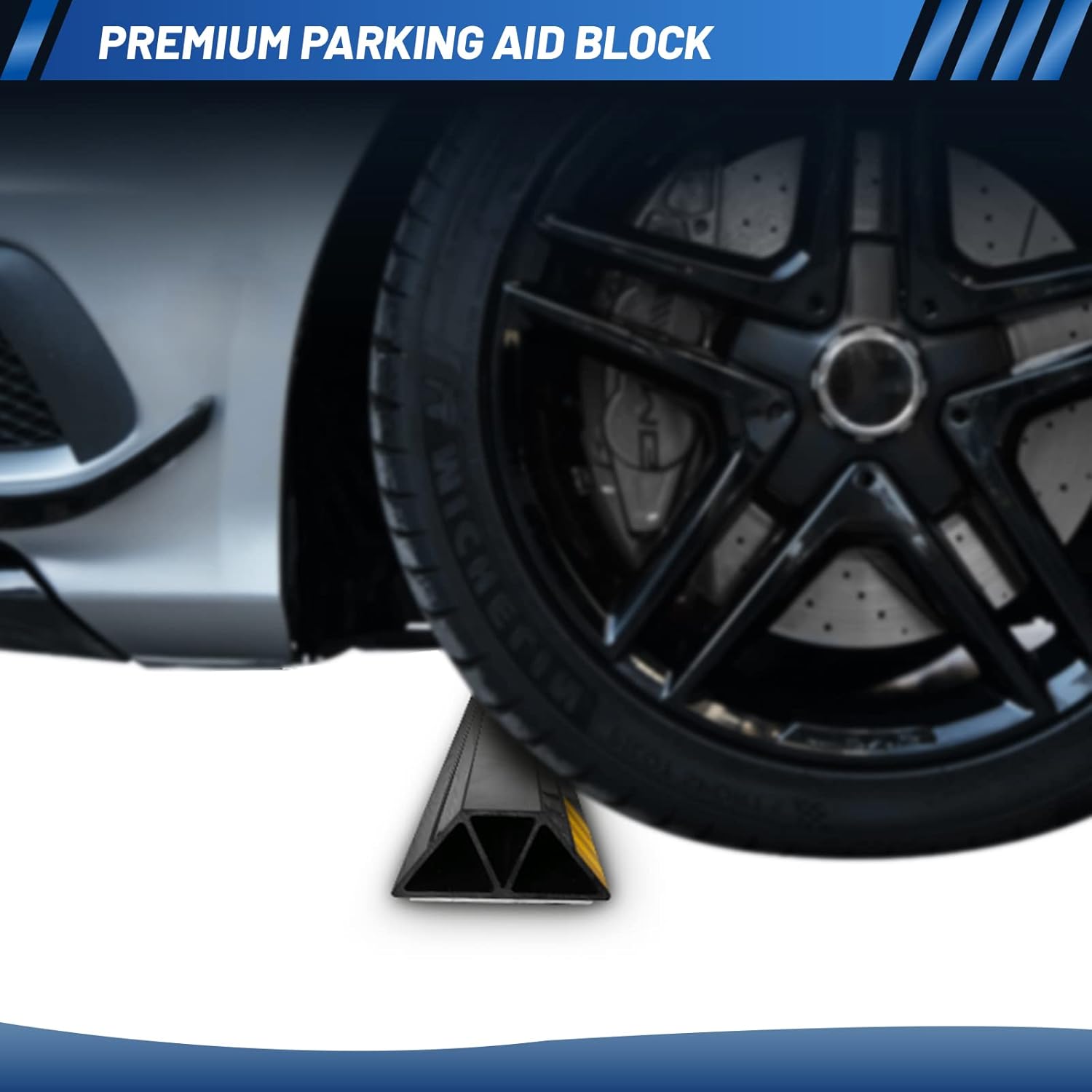- [MORE SECURE]: The upgraded car stopper for garage design increases the height to 1.8 inches, can prevent tires from out-running the parking aid more effectively, avoid hitting the walls or other parked cars. Securing your car to the ground better and making parking more safer every time.