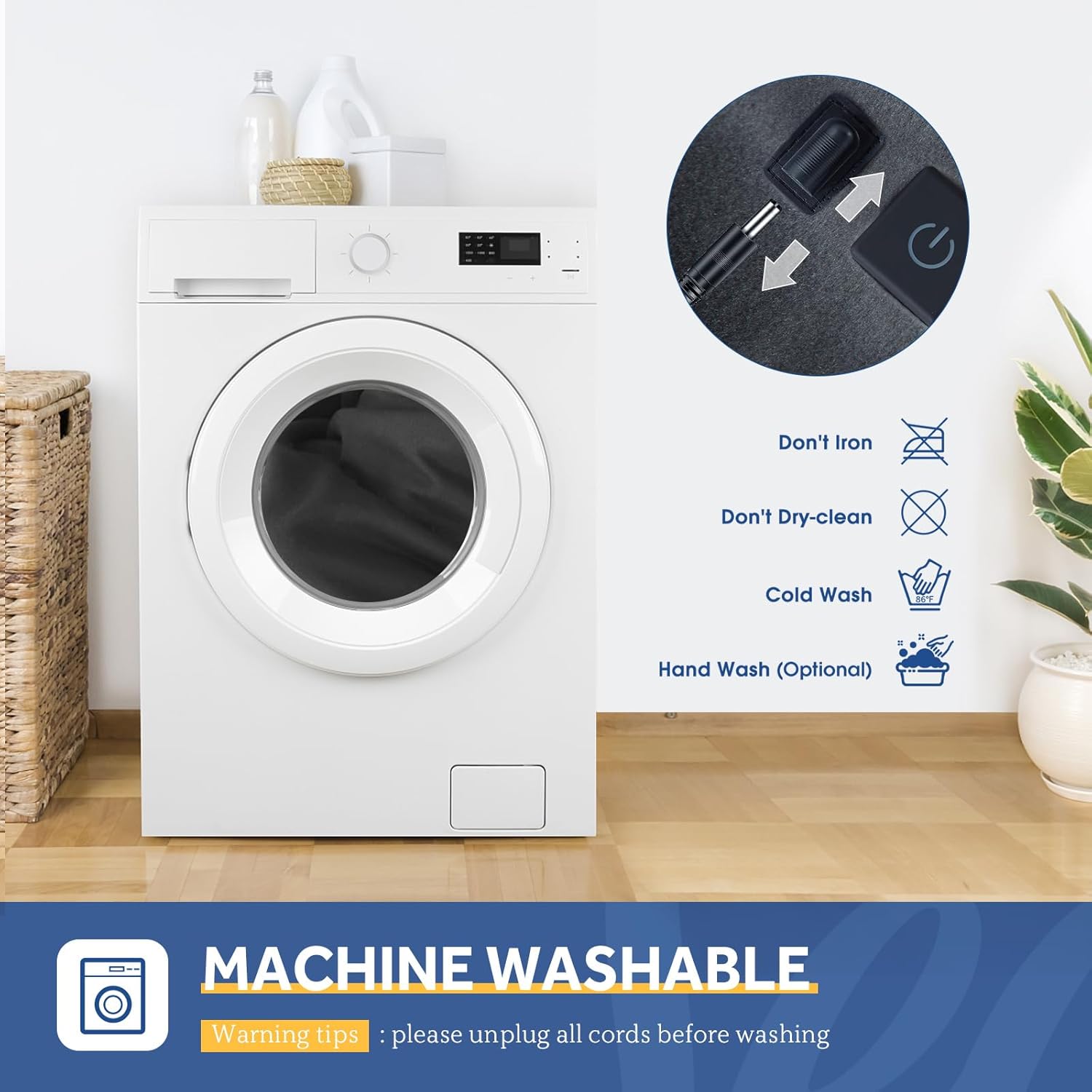 - 【Extended Power Cord】Portable electric blanket specifically designed with heavy duty insulated cord, 85 inches long power cord, don't worry about being restricted to heated positions, Say goodbye to the constraints of limited heated positions, you can enjoy the cozy warmth wherever you choose to sit, guaranteeing a truly enjoyable journey.