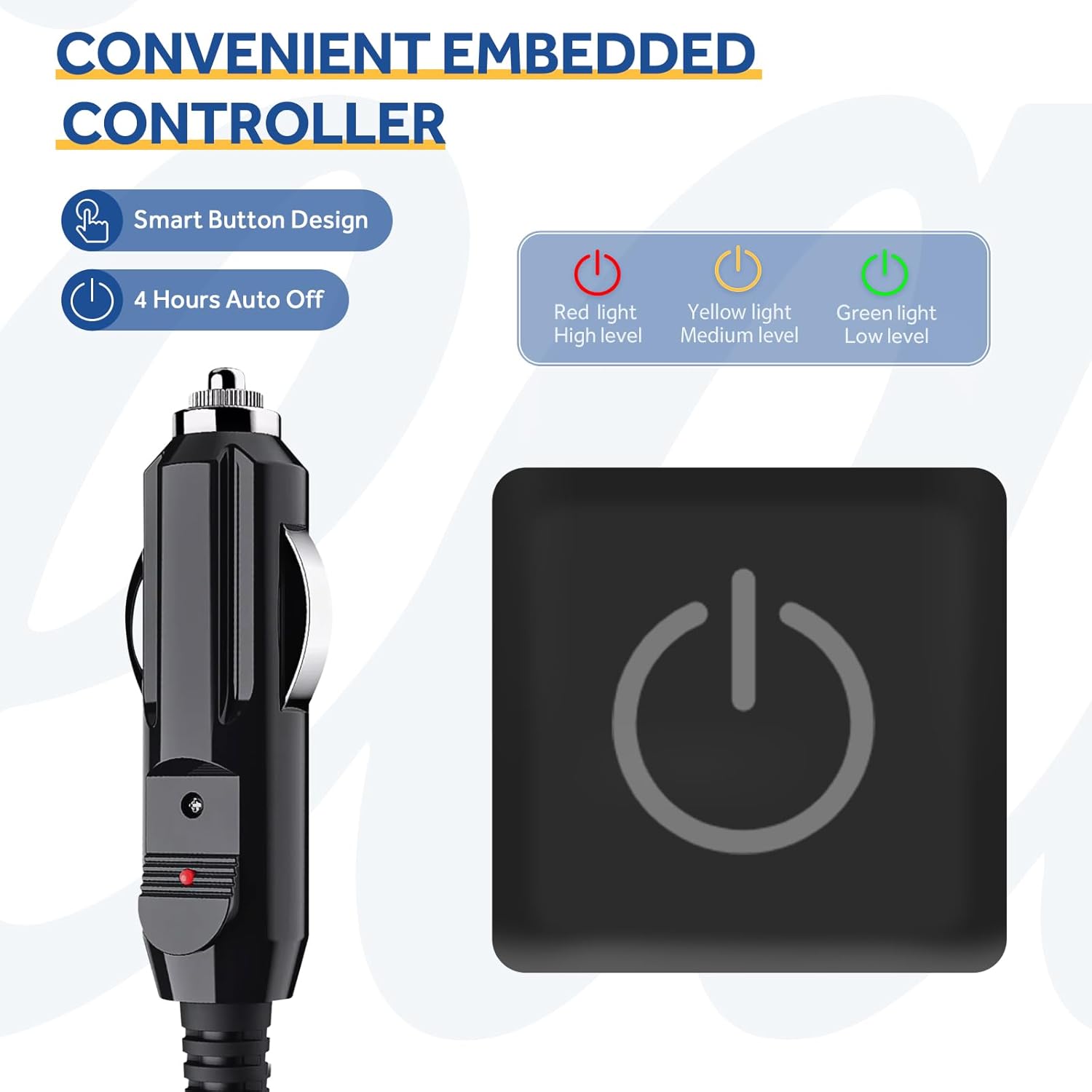- 【Energy-efficient】 Portable heated blanket with 3 heating levels & 4 hours auto off, you can choose the temperature according to your needs. Compared to turning on the entire vehicle's heating system, a car heating blanket only uses a small amount of electricity, thus reducing energy consumption.