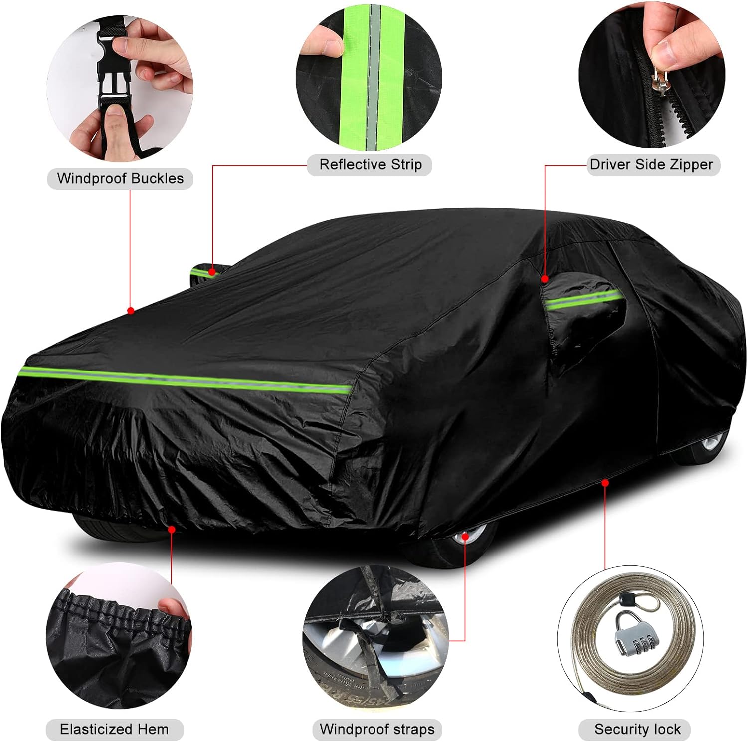 - Much Safer with Lock: Equipped with safety lock to ensure that your car cover will not be taken away(please refer to the detailed introduction below this page)