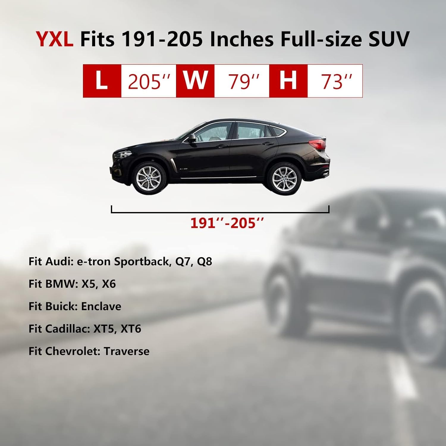 - COMPATIBLE SIZE: Tecoom YXL car cover fits 191"- 205" length SUV. Please check car details before ordering - hatchback coupe or SUV; date of manufacture; vehicle overall length.