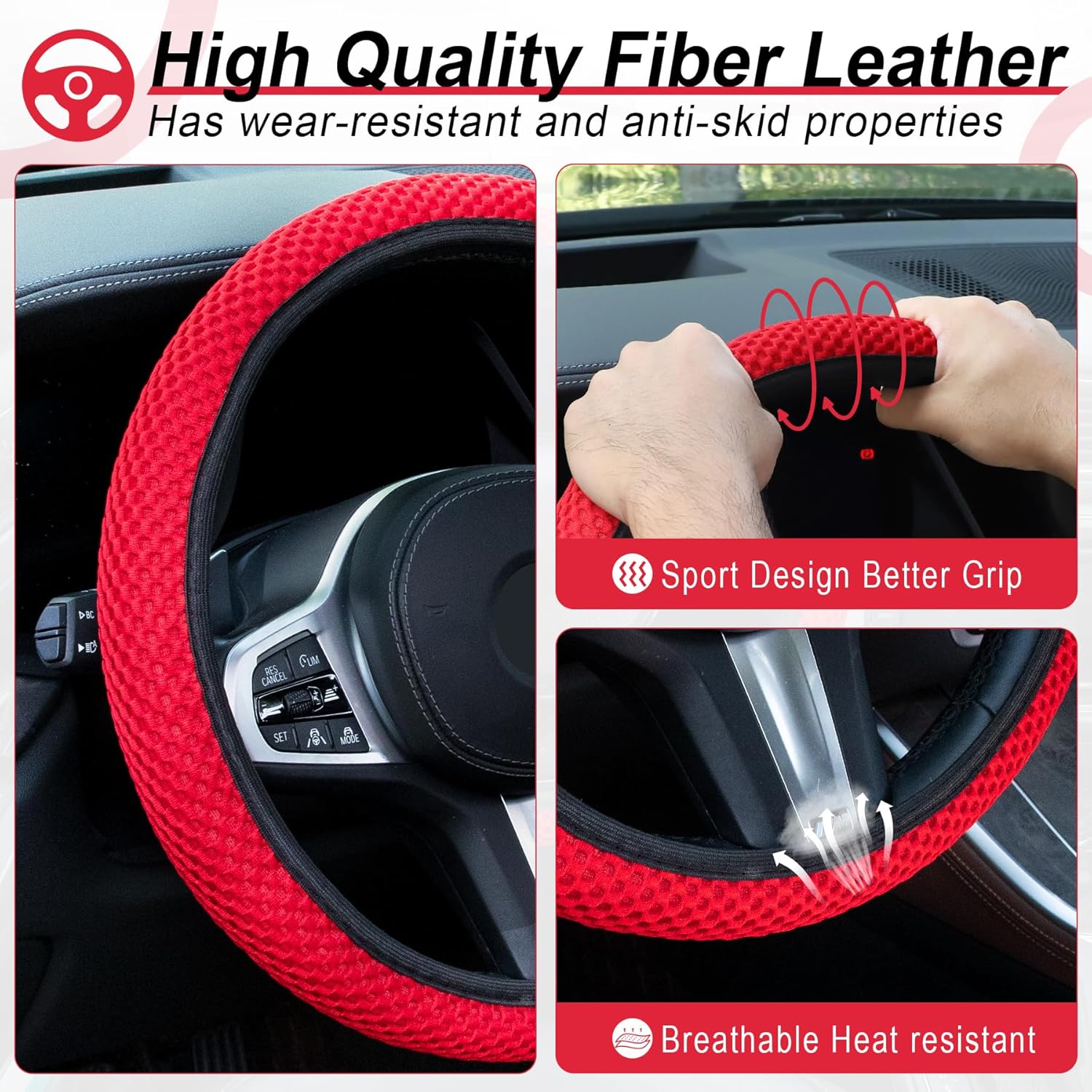 alpmosn Elastic Stretch Steering Wheel Cover, Universal Interior Accessories Steering Wheel Cover for Women & Men, Breathable Microfiber Ice Silk, Anti-Slip, Odorless, Easy Carry(Red)