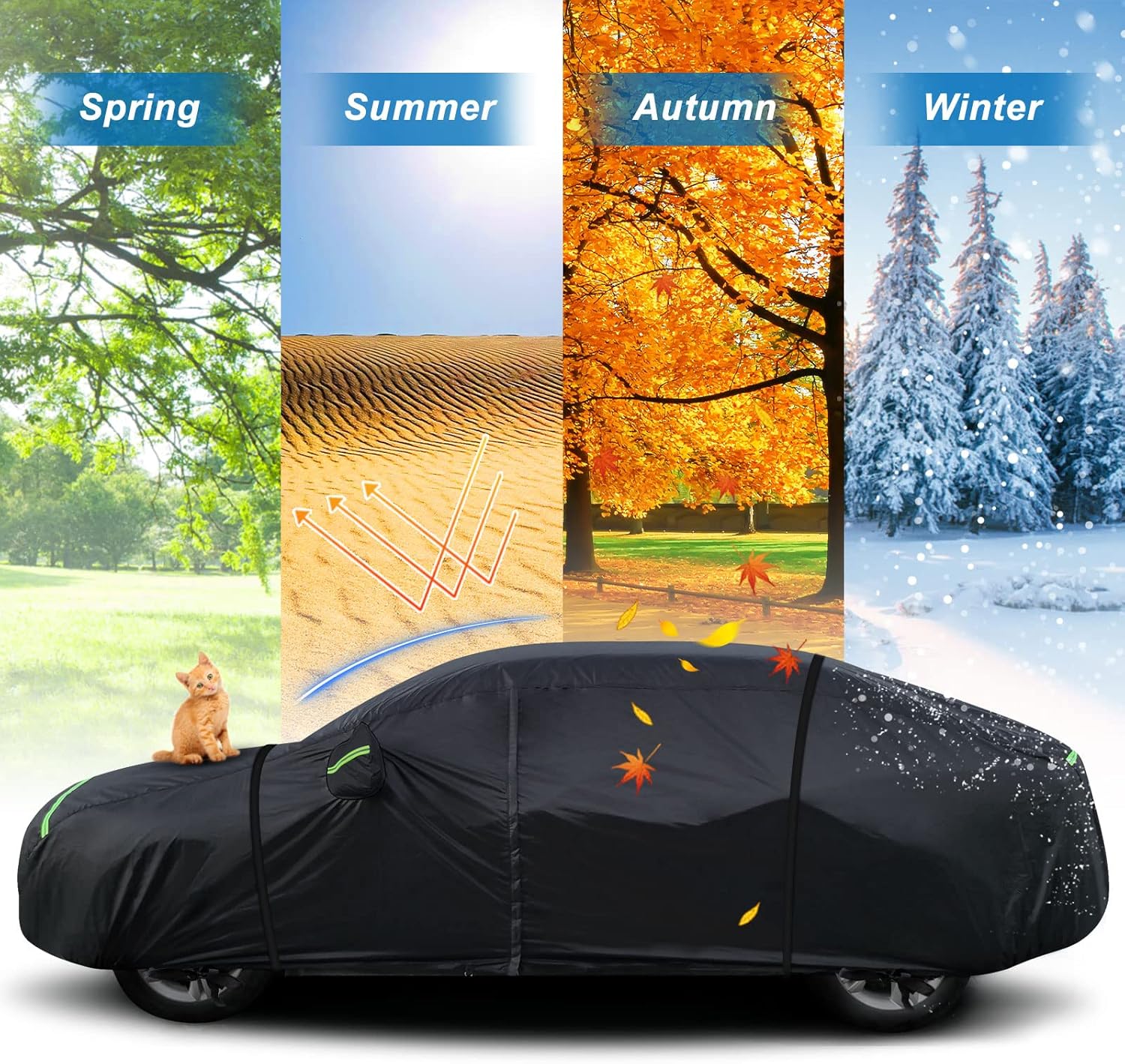 - 【All-Weather Protection】Take High-density 210T polyester fabric and cotton as material to make sure its quality is tough, durable and safe under poor windy conditions. Prefect for all weathers and seasons. Preserve your Vehicle and Paint Against All Rain, Snow, Sun, Bird Droppings, Dust/Dirt - Approved for All Season Use (Spring, Summer, Fall, Winter).