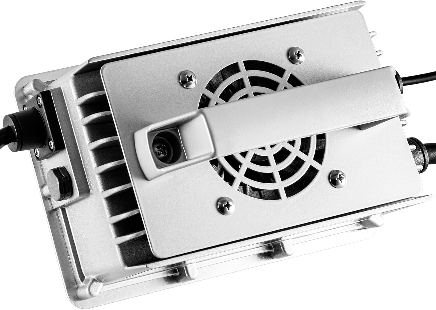 - [Aluminum casting shell waterproof and dustproof ] The shell is made of aluminum casting, the charger is filled with AB glue to protect and cool down the main board and components, waterproof and dustproof rating of IP66, AC cable length of 5 feet, DC cable length of 10 feet; comfortable carrying handle, the weight of the product is about 8 Ibs.