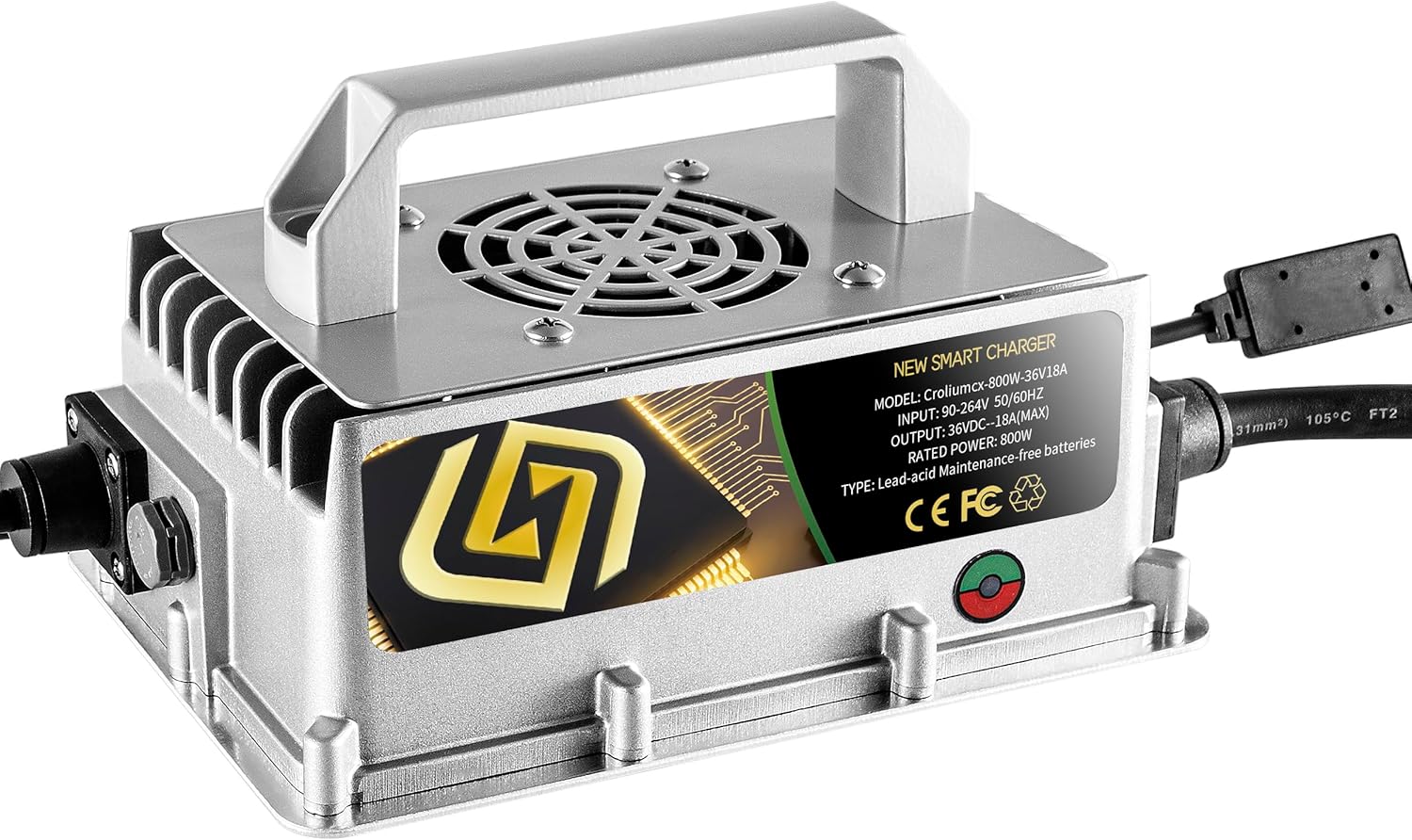 36Volt 18Amp Aluminum Casting Wide Voltage Golf Cart Battery Charger Onboard Conversion Matching O-Type Terminal Charges The 36V EZGO/Club Car Golf Cart/Electric Motorcycle