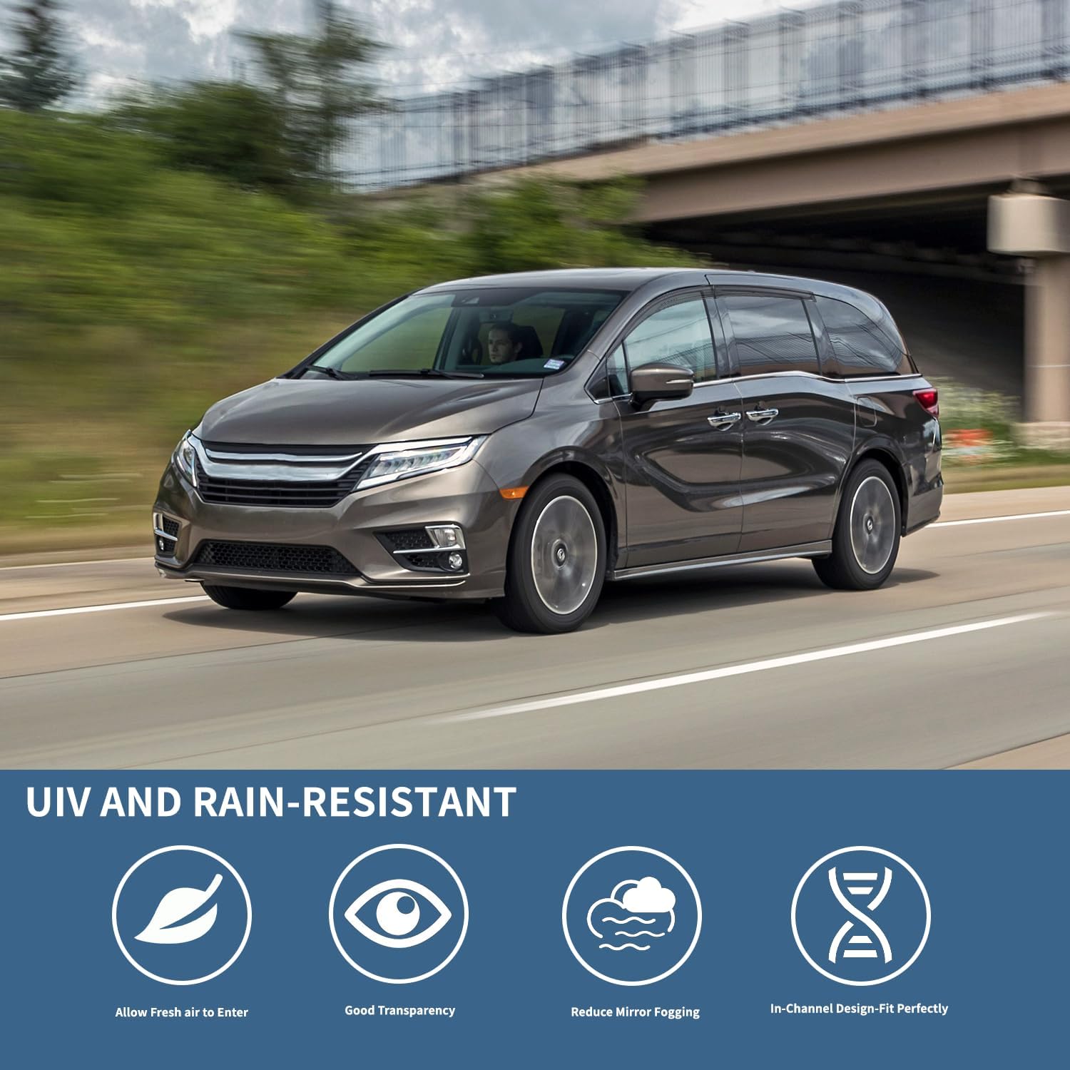 - FITMENT: 4pcs sun rain snow guard wind deflector vent shade side window visors compatible with 18 19 20 21 22 23 (18 -23) Honda Odyssey