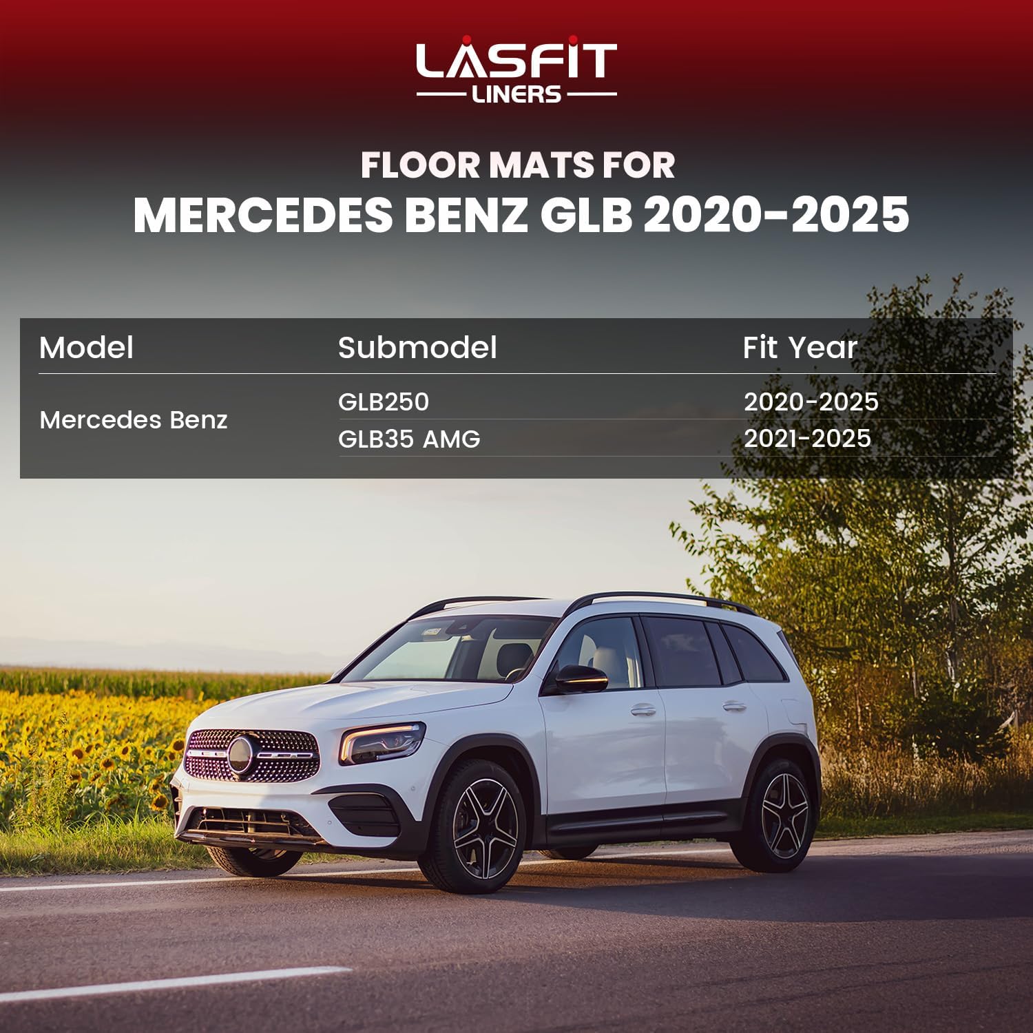 - Custom Fit : State-of-the-art 3D laser scanning technology ensures the perfect custom fit for Mercedes Benz GLB250 / GLB35 AMG 2025 2024 2023 2022 2021 2020 with full coverage. LASFIT floor mats are precisely tailored for vehicle-specific floor carpets. Includes the 1st & 2nd row floor mats.