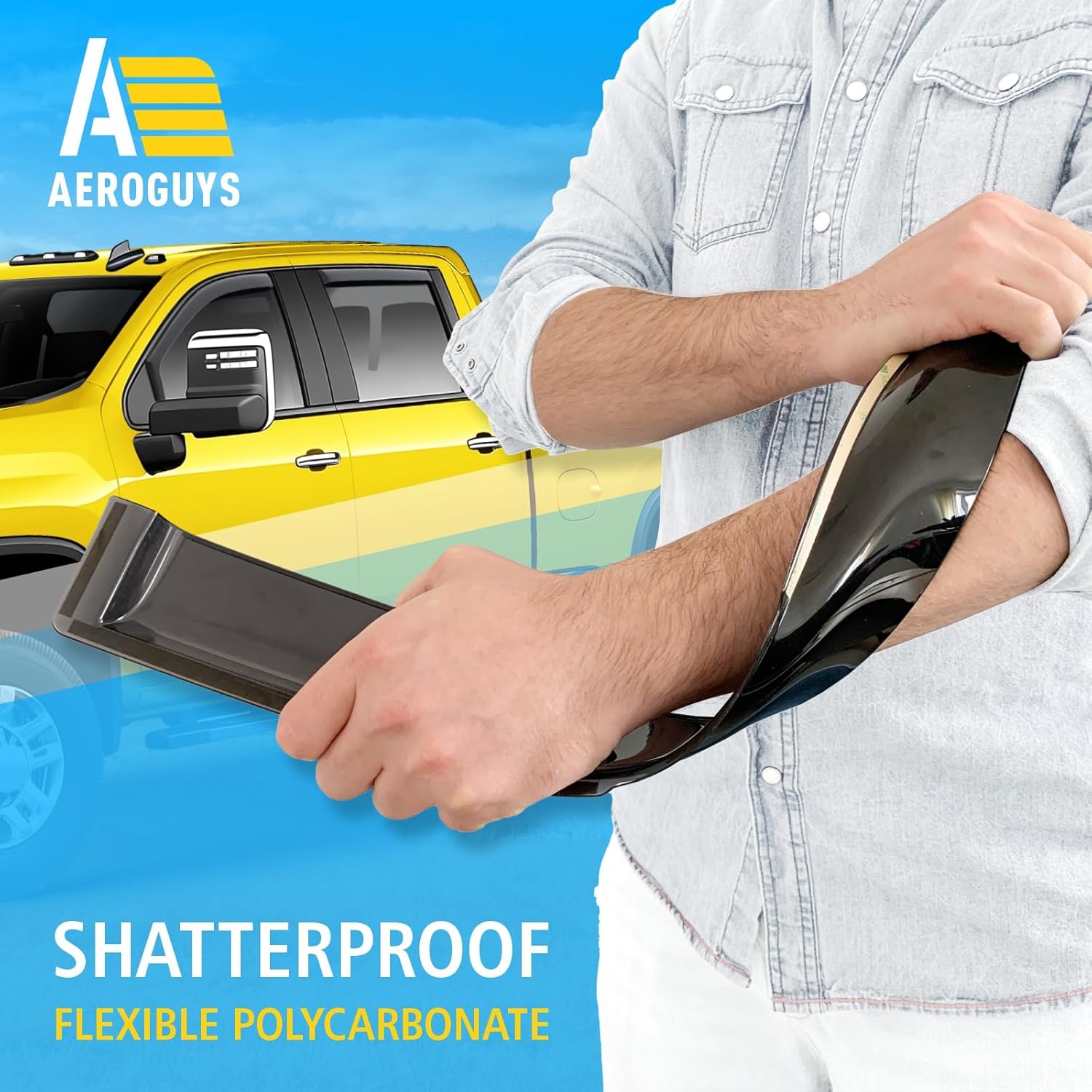 - Incredibly Durable AEROGUYS Auto Window Deflectors – They are made with strong and tough polycarbonate which is clear and scratch-resistant. They also provide UV protection making your ride more comfortable under all weather conditions.