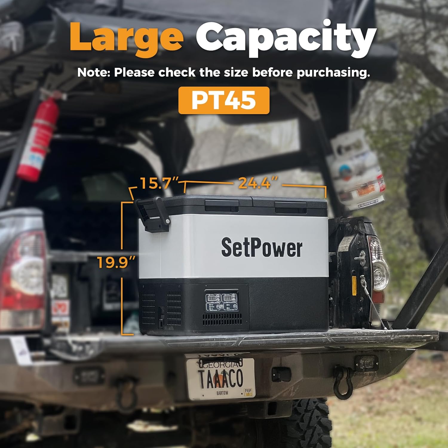 Setpower PT45 Electric Cooler Car Refrigerator,45L Dual Zone Portable Freezer Fridge,Portable Car Fridge,12 Volt Refrigerator for Car,Truck,RV,Vehicles,Travel and Home Use,0℉-50℉