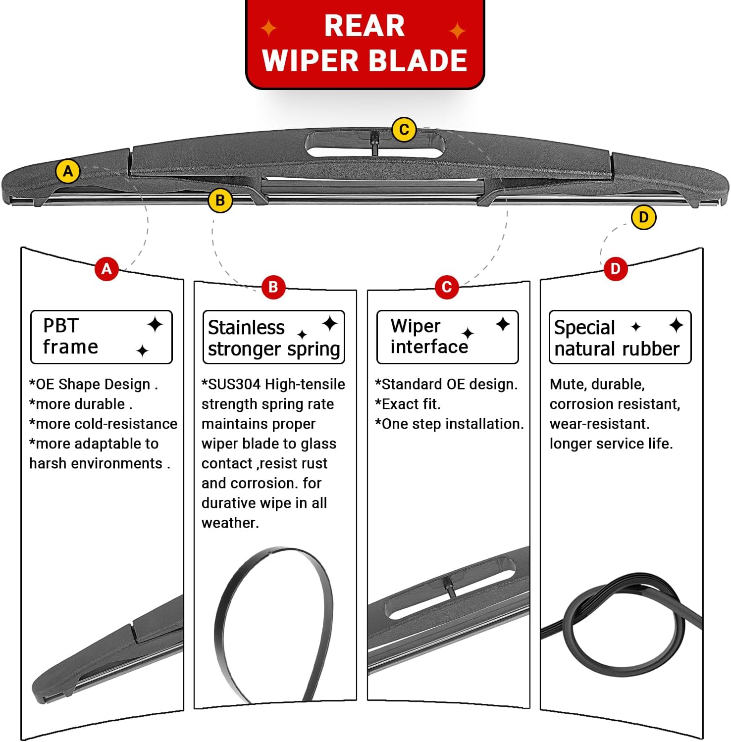 - {WIPER PERFORMANCE}: Natural rubber material making sure the wiping is the best, quiet wiping without judder or squeaking, resistant and a long service life.