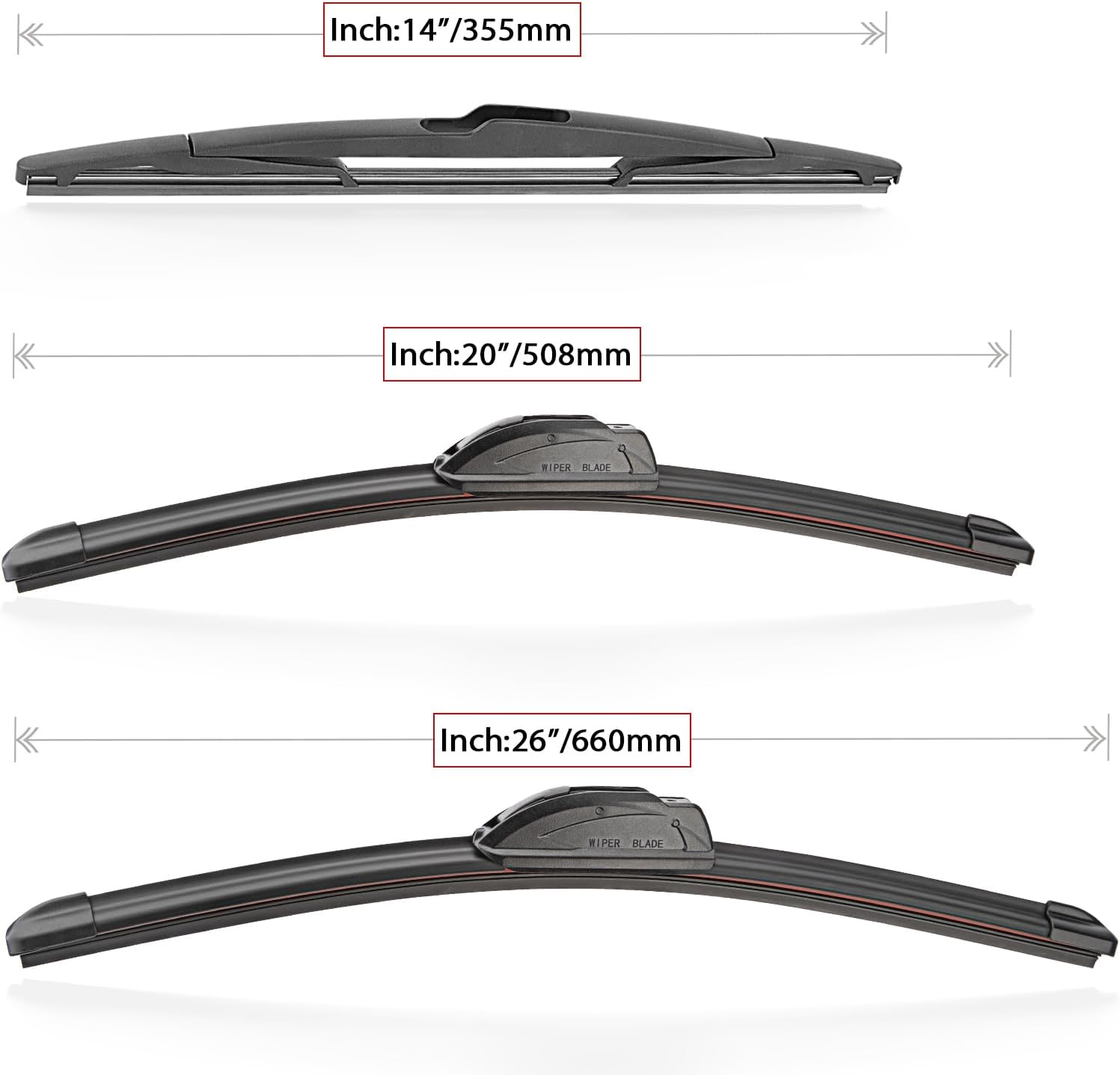 - {WIPER PERFORMANCE}: Natural rubber material making sure the wiping is the best, quiet wiping without judder or squeaking, resistant and a long service life.
