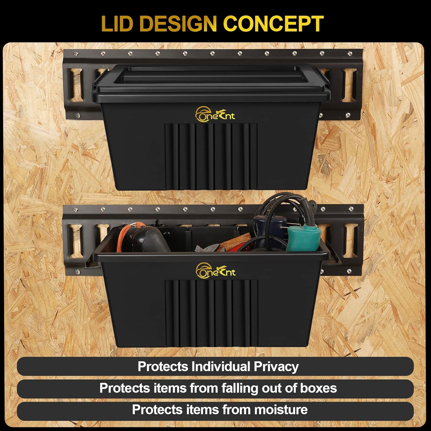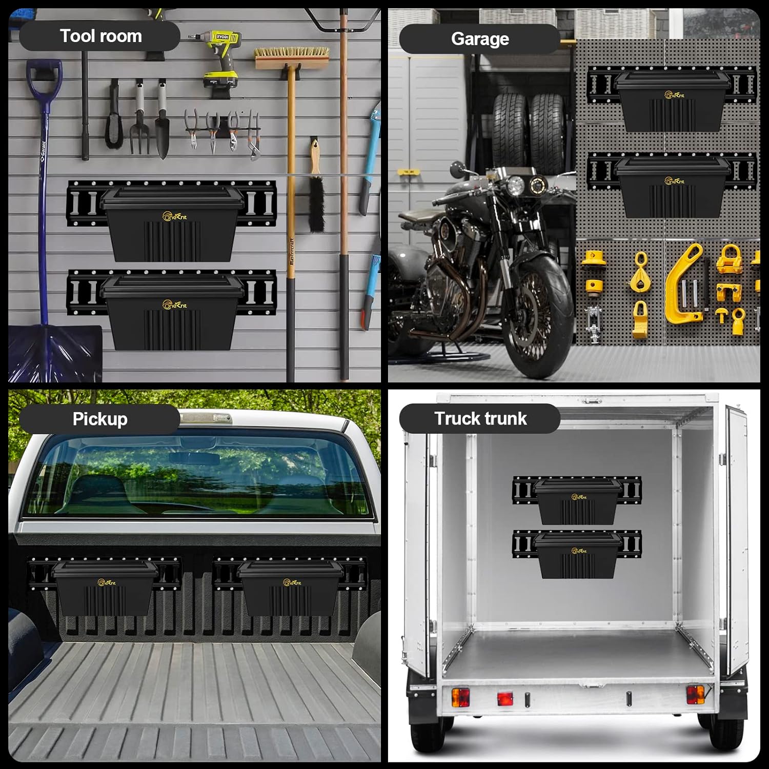 - Application:Brand Onesnt professional organizers will tell you that the key to efficiency and peace of mind is to distribute all items to your own baskets and boxes. E track box Strong, durable plastic can hold 200 lb.